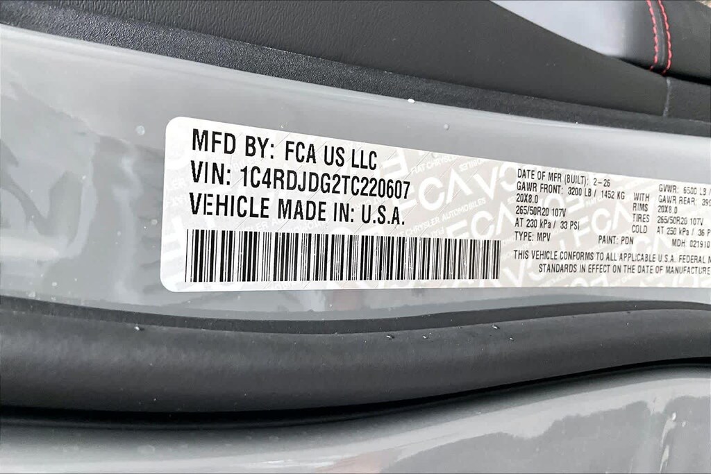 Lithia Chrysler Dodge Jeep Ram of Tri-Cities is pleased to offer this Destroyer Gray Clearcoat 2026 Dodge Durango GT Plus for purchase, this vehicle is well equipped with many features including:Blacktop Redline Package (2nd Row Fold/Tumble Captain Chairs, 2nd Row Mini Console with Cupholders, 2nd Row Seat Mounted Inboard Armrests, 3rd Row Floor Mat and Mini Console, 6-Passenger Seating, Black Roof Rails, Blacktop Leather SRT Performance Seats, Crypto Sweep Etch Accents, Floor Console with Leather Armrest, Gloss Black Badges, Gloss Black Exterior Mirrors, GT Decal with Red Tracer, Heated Second Row Seats, Integrated Roof Rail Crossbars, Performance Hood, Performance Lower Splitter, Power 8-Way Driver Memory 8-Way Passenger Seats, Power Driver/Passenger 4-Way Lumbar Adjust, Premium Door Trim Panel, Premium Instrument Panel, Satin Black Dodge Tail Lamp Badge, SRT Rear Spoiler, Ventilated Front Seats, and Wheels: 20 x 8 Black Noise Aluminum), MOPAR All Weather Package (Cargo Net, MOPAR Front and Rear Door Entry Guards, and MOPAR Slush Mats), Quick Order Package 2BH GT Plus (115V Auxiliary Power Outlet, 180 Amp Alternator, 506 Watt Amplifier, 7 and 4 Pin Wiring Harness, 9 Alpine Amplified Speakers with Subwoofer, Adaptive Cruise Control with Stop, Advanced Brake Assist, Auto High Beam Headlamp Control, Auto-Dimming Exterior Driver Mirror, Blind Spot with Trailer Detection, Bright Cargo Area Scuff Pads, Class IV Receiver Hitch, Dual Remote USB Port - Charge Only, Exterior Mirrors with Heating Element, Exterior Mirrors with Memory, Exterior Mirrors with Supplemental Signals, Full Speed Forward Collision Warning Plus, Heavy-Duty Engine Cooling, Lane Departure Warning Plus, Leather Trimmed Bucket Seats, Leather Wrapped Door Panels, LED Auxiliary Low Beam and Turn Signal, ParkSense Front/Rear Park Assist with Stop, Power 6x9 Multi-Function Foldaway Mirrors, Power Sunroof, Power Tilt and Telescopic Steering Column, Rear Load Leveling Suspension, Red Accent Stitching, Security Alarm, Sun Visors with Illuminated Vanity Mirrors, Trailer Brake Control, and Wireless Charging Pad), AWD, 3.45 Rear Axle Ratio, 3rd row seats: split-bench, 4-Wheel Disc Brakes, 6 Speakers, ABS brakes, Air Conditioning, Alloy wheels, AM/FM radio: SiriusXM w/360L, Apple CarPlay/Android Auto, Auto-dimming Rear-View mirror, Automatic temperature control, Brake assist, Bumpers: body-color, Cloth Bucket Seats with Shift Insert, Compass, Delay-off headlights, Driver door bin, Driver vanity mirror, Dual front impact airbags, Dual front side impact airbags, Electronic Stability Control, Emergency communication system: Dodge Connect, Four wheel independent suspension, Front anti-roll bar, Front Bucket Seats, Front Center Armrest w/Storage, Front dual zone A/C, Front License Plate Bracket, Front reading lights, Fully automatic headlights, Garage door transmitter, Heated door mirrors, Heated front seats, Heated steering wheel, Illuminated entry, Knee airbag, Leather steering wheel, Low tire pressure warning, Navigation System, Occupant sensing airbag, Outside temperature display, Overhead airbag, Overhead console, Panic alarm, ParkView Rear Back-Up Camera, Passenger door bin, Passenger vanity mirror, Power door mirrors, Power driver seat, Power Liftgate, Power steering, Power windows, Radio data system, Radio: Uconnect 5 Nav with 10.1 Display, Rear air conditioning, Rear anti-roll bar, Rear reading lights, Rear seat center armrest, Rear window defroster, Rear window wiper, Remote keyless entry, Speed control, Speed-sensing steering, Speed-Sensitive Wipers, Split folding rear seat, Spoiler, Sport steering wheel, Steering wheel mounted audio controls, Tachometer, Telescoping steering wheel, Tilt steering wheel, Traction control, Trip computer Price includes: $1000 - 2026 National Engine Retail Bonus Cash . Exp. 03/31/2026 $1000 - 2026 West BC Retail Bonus Cash . Exp. 03/31/2