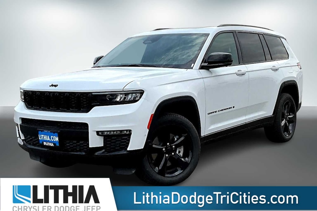 Lithia Chrysler Dodge Jeep Ram of Tri-Cities is pleased to offer this Bright White Clearcoat 2025 Jeep Grand Cherokee L Limited for purchase, this vehicle is well equipped with many features including:Black Appearance Package (Gloss Black Exterior Accents and Wheels: 20 x 8.5 Gloss Black Painted Aluminum), Luxury Tech Group II (2nd Row Manual Window Shades, Auto-Dimming Exterior Driver Mirror, Capri Leatherette w/Axis II Seats, Integrated Off-Road Camera, Intersection Collision Assist System, Memory Steering Column, ParkSense Front/Rear Park Assist w/Stop, Passive Entry - Front/Rear Doors, Liftgate, Power Tilt/Telescope Steering Column, Rain Sensitive Windshield Wipers, Rear Back Up Camera Washer, Rearview Autodim Digital Display Mirror, Surround View Camera System, Ventilated Front Seats, and Wireless Charging Pad), Quick Order Package 22E, Trailer Tow Package (220 Amp Alternator, 7 & 4 Pin Wiring Harness, Automatic Headlamp Leveling System, Class IV Receiver Hitch, Dual Exhaust Tips, Heavy-Duty Engine Cooling, Rear Load Leveling Suspension, and Trailer Hitch Zoom), 3.45 Rear Axle Ratio, 3rd row seats: split-bench, 4-Wheel Disc Brakes, 506 Watt Amplifier, 6 Speakers, 9 Amplified Speakers w/Subwoofer, ABS brakes, Active Noise Control System, Air Conditioning, Alloy wheels, AM/FM radio: SiriusXM with 360L, Anti-whiplash front head restraints, Audio memory, Auto High-beam Headlights, Automatic temperature control, Brake assist, Bumpers: body-color, Capri Leatherette Seats, Compass, Delay-off headlights, Driver door bin, Driver vanity mirror, Dual front impact airbags, Dual front side impact airbags, Dual-Pane Panoramic Sunroof, Electronic Stability Control, Emergency communication system, Four wheel independent suspension, Front anti-roll bar, Front Bucket Seats, Front Center Armrest w/Storage, Front dual zone A/C, Front fog lights, Front License Plate Bracket, Front reading lights, Fully automatic headlights, Garage door transmitter, Heated door mirrors, Heated front seats, Heated rear seats, Heated steering wheel, Illuminated entry, Interior Rear Facing Camera, Knee airbag, Low tire pressure warning, Manual Fold Seatbacks, Memory seat, Model Year Tracking, Navigation System, Normal Duty Suspension, Occupant sensing airbag, Outside temperature display, Overhead airbag, Overhead console, Panic alarm, ParkView Rear Back-Up Camera, Passenger door bin, Passenger vanity mirror, Power door mirrors, Power driver seat, Power Liftgate, Power passenger seat, Power steering, Power windows, Radio data system, Radio: Uconnect 5 Nav w/10.1 Display, Rear air conditioning, Rear anti-roll bar, Rear reading lights, Rear window defroster, Rear window wiper, Reclining 3rd row seat, Remote keyless entry, Security system, Speed control, Speed-Sensitive Wipers, Split folding rear seat, Spoiler, Steering wheel mounted audio controls, Tachometer, Telescoping steering wheel, Tilt steering wheel, Traction control, Trip computer, Turn signal indicator mirrors, Variably intermittent wipers, Voltmeter, and Wheels: 18 x 8.0 Polished/Painted Aluminum.