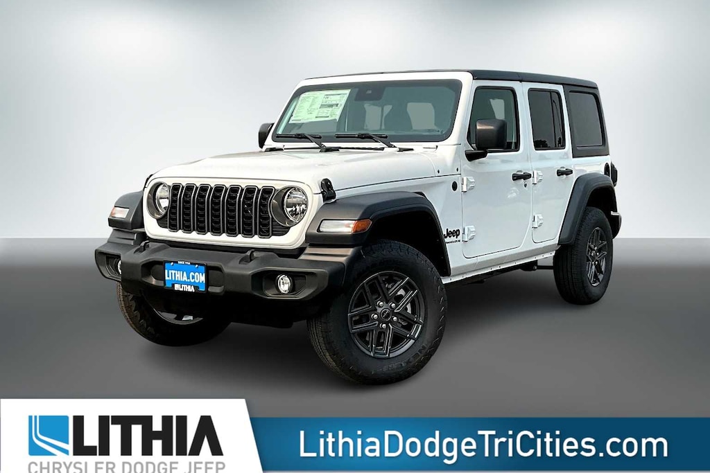 Lithia Chrysler Dodge Jeep Ram of Tri-Cities is pleased to offer this Bright White Clearcoat 2025 Jeep Wrangler Sport S for purchase, this vehicle is well equipped with many features including:Convenience Group (2-Door Passive Entry, Front Door Locks, Air Conditioning w/Auto Temperature Control, Air Filtering, Cluster 7.0 TFT Color Display, Emergency/Assistance Call, Heated Front Seats, Heated Steering Wheel, Remote Start System, and Universal Garage Door Opener), Quick Order Package 24S Sport S (Advanced Brake Assist, Automatic Headlamps, Corning Gorilla Glass, Deep Tint Sunscreen Windows, Enhanced Adaptive Cruise Control, Full Speed Forward Collision Warning Plus, Power Heated Mirrors, Premium Wrapped Steering Wheel, Security Alarm, Sun Visors w/Illuminated Vanity Mirrors, and Wheels: 17 x 7.5 Gray), Safety Group (Auto High Beam Headlamp Control, Blind Spot & Cross Path Detection, Injection Molded Black Rear Bumper, LED Taillamps, and ParkSense Rear Park Assist System), 110 MPH Vehicle Max Speed Calibration, 3.45 Overall Top Gear Ratio, 4-Wheel Disc Brakes, 8 Speakers, ABS brakes, Air Conditioning, AM/FM radio: SiriusXM, Apple CarPlay/Android Auto, Aux Battery, Black 3-Piece Hard Top, Brake assist, Cloth Low-Back Bucket Seats, Compass, Delay-off headlights, Driver door bin, Driver vanity mirror, Dual front impact airbags, Dual front side impact airbags, Electronic Stability Control, Freedom Panel Storage Bag, Front anti-roll bar, Front Bucket Seats, Front Center Armrest w/Storage, Front fog lights, Front reading lights, Illuminated entry, Integrated roll-over protection, Low tire pressure warning, MOPAR All-Weather Floor Mats, MOPAR Hardtop Headliner, Non-Lock Fuel Cap w/o Discriminator, Normal Duty Suspension, Occupant sensing airbag, Outside temperature display, Overhead airbag, Panic alarm, ParkView Rear Back-Up Camera, Passenger door bin, Passenger vanity mirror, Power steering, Power windows, Radio data system, Radio: Uconnect 5 w/12.3 Display, Rear anti-roll bar, Rear reading lights, Rear Window Defroster, Rear Window Wiper/Washer, Remote keyless entry, Speed control, Split folding rear seat, Steering wheel mounted audio controls, Stop-Start Dual Battery System, Tachometer, Telescoping steering wheel, Tilt steering wheel, Traction control, Trip computer, Variably intermittent wipers, and Wheels: 17 x 7.5 Black Steel Styled.