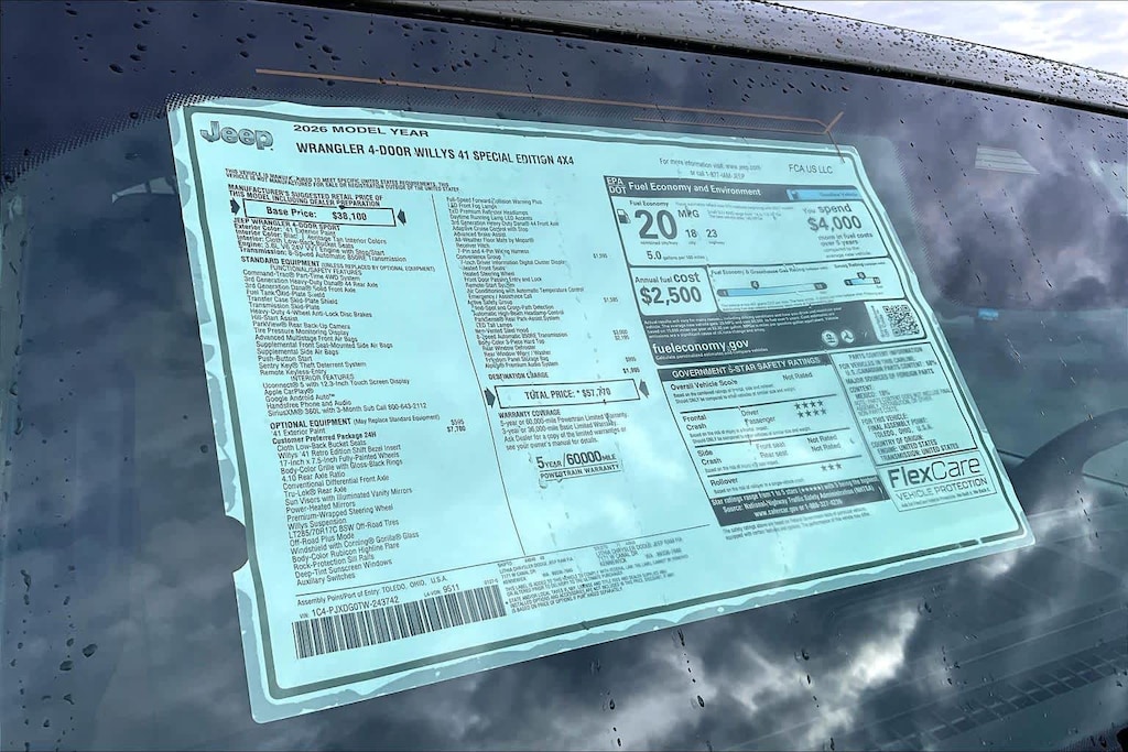 Lithia Chrysler Dodge Jeep Ram of Tri-Cities is pleased to offer this 41 2026 Jeep Wrangler Willys for purchase, this vehicle is well equipped with many features including:Convenience Group (2-Door Passive Entry, Front Door Locks, Air Conditioning with Auto Temp Control, Air Filtering, Cluster 7.0 TFT Color Display, Emergency/Assistance Call, Heated Front Seats, Heated Steering Wheel, and Universal Garage Door Opener), Quick Order Package 24H Willys 41 (4WD Willys 41 Swing Gate Decal, 7 and 4 Pin Wiring Harness, 97 MPH Vehicle Max Speed Calibration, Adaptive Cruise Control with Stop, Advanced Brake Assist, Automatic Headlamps, Auxiliary Switches, Body Color Grille with Gloss Black Rings, Body Color Rubicon Highline Flare, Class II Receiver Hitch, Cloth Low-Back Bucket Seats, Conventional Differential Front Axle, Corning Gorilla Glass, Dana M210 Wide HD Tube Front Axle, Dana M220 Wide Rear Axle, Daytime Running Lamps LED Accents, Deep Tint Sunscreen Windows, E-Locker Rear Axle, Front LED Fog Lamps, Full Speed Forward Collision Warning Plus, LED Premium Reflector Headlamps, MOPAR All-Weather Floor Mats, Off-Road Plus Mode, Power Heated Mirrors, Premium Tan Sunrider Soft Top, Premium Wrapped Steering Wheel, Security Alarm, Steel Front Bumper, Steel Rear Bumper, Sun Visors with Illuminated Vanity Mirrors, Wheels: 17 x 7.5 Fully Painted, Willys Suspension, Willys 41 Retro Edition Buzz Model, Willys 41 Retro Edition Hood Decal, Willys 41 Retro Edition Tailgate Plaque, Willys 41 Retro Edition Wrangler Decal, Willys 41 Retro Shift Bezel Insert, and Willys 41 US Edition U.S. Hood Decal), Safety Group (Auto High Beam Headlamp Control, Blind Spot and Cross Path Detection, Injection Molded Black Rear Bumper, LED Taillamps, and ParkSense Rear Park Assist System), Steel Power Dome Hood Package (Power Dome Dual Vented Hood), 12.3 Touchscreen Display, 4-Wheel Disc Brakes, 4G LTE Wi-Fi Hot Spot, 8 Speakers, ABS brakes, Air Conditioning, Alpine Premium Audio System, AM/FM radio: SiriusXM with 360L, Apple CarPlay, Apple CarPlay/Android Auto, Aux Battery, Body Color 3-Piece Hard Top, Brake assist, Compass, Connectivity - US/Canada, Delay-off headlights, Driver door bin, Driver vanity mirror, Dual front impact airbags, Dual front side impact airbags, Electronic Stability Control, For More Info, Call 800-643-2112, Freedom Panel Storage Bag, Front anti-roll bar, Front Bucket Seats, Front Center Armrest w/Storage, Front fog lights, Front reading lights, Google Android Auto, Illuminated entry, Integrated Center Stack Radio, Integrated roll-over protection, Low tire pressure warning, Manufacture Statement of Origin, No Soft Top, Non-Lock Fuel Cap Without Discriminator, Normal Duty Suspension, Occupant sensing airbag, Outside temperature display, Overhead airbag, Panic alarm, ParkView Rear Back-Up Camera, Passenger door bin, Passenger vanity mirror, Power steering, Power windows, Radio data system, Radio: Uconnect 5 with 12.3 Display, Rear anti-roll bar, Rear reading lights, Rear Window Defroster, Rear Window Wiper/Washer, Remote keyless entry, SiriusXM Radio Service, SiriusXM with 360L, Speed control, Split folding rear seat, Steering wheel mounted audio controls, Stop-Start Dual Battery System, Tachometer, Telescoping steering wheel, Tilt steering wheel, Traction control, Trip computer, Variably intermittent wipers, and Wheels: 17 x 7.5 Black Steel Styled.