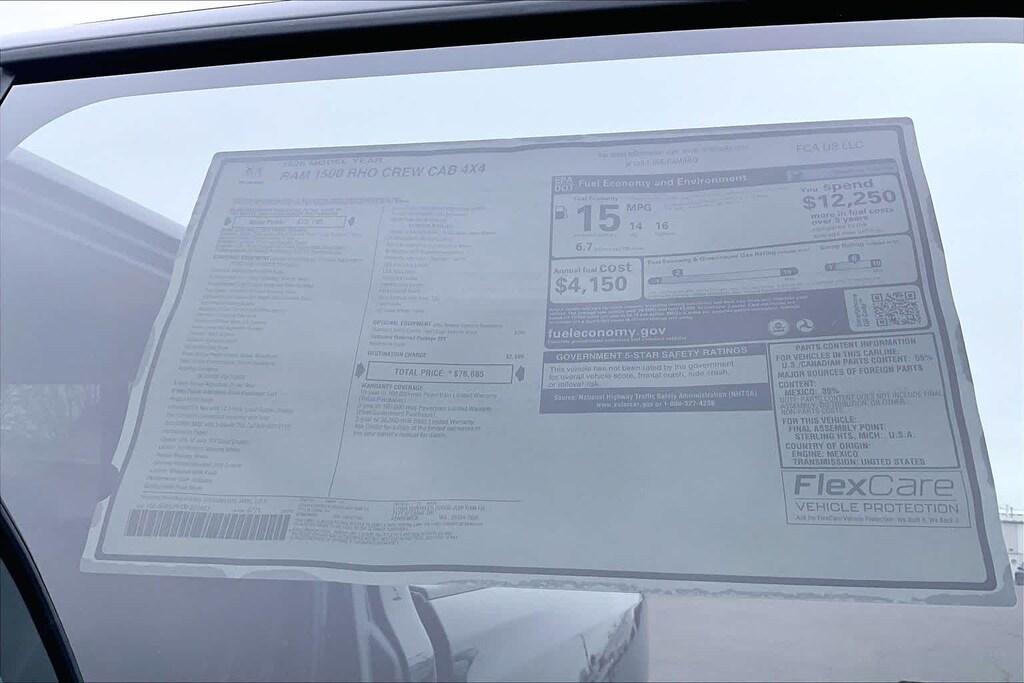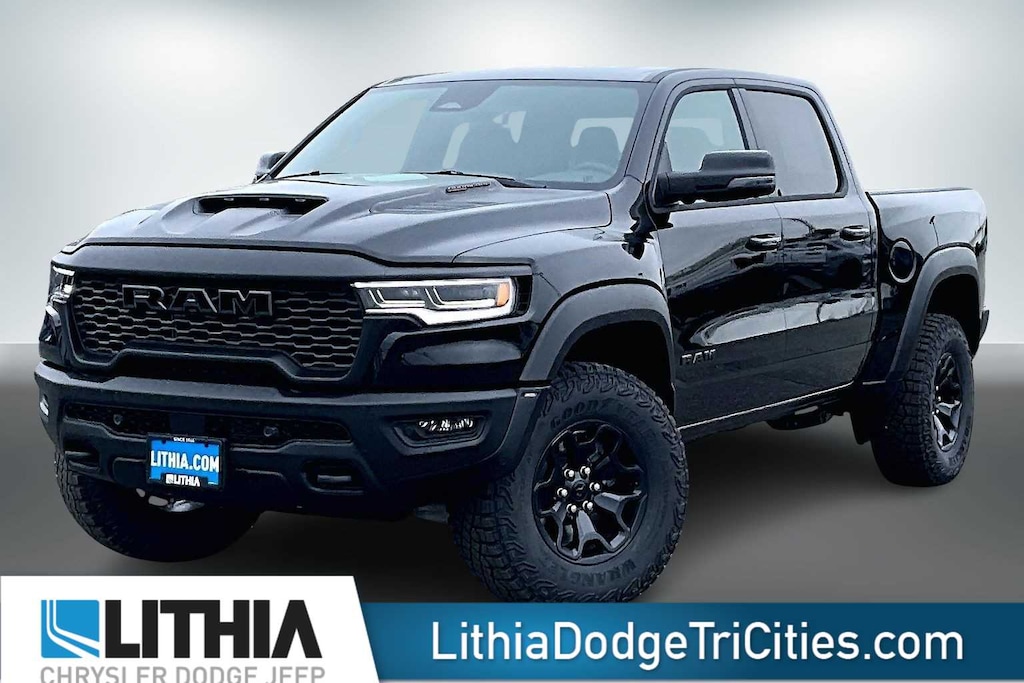 Lithia Chrysler Dodge Jeep Ram of Tri-Cities is pleased to offer this Diamond Black Crystal Pearlcoat 2026 Ram 1500 RHO for purchase, this vehicle is well equipped with many features including:Quick Order Package 22Y RHO, 10 Speakers, 3.92 Rear Axle Ratio, 4-Wheel Disc Brakes, 4G LTE Wi-Fi Hot Spot, ABS brakes, Adaptive suspension, Adjustable pedals, Air Conditioning, Alloy wheels, AM/FM radio, Apple CarPlay/Android Auto, Auto High-beam Headlights, Auto Power-Folding Mirrors, Auto-dimming door mirrors, Auto-Dimming Exterior Driver Mirror, Auto-dimming Rear-View mirror, Automatic temperature control, Brake assist, Compass, Connected Travel and Traffic Services, Connectivity - US/Canada, Delay-off headlights, Disassociated Touchscreen Display, Driver door bin, Driver vanity mirror, Dual front impact airbags, Dual front side impact airbags, Electronic Stability Control, Exterior Mirrors Courtesy Lamps, Exterior Mirrors with Heating Element, Exterior Mirrors with Supplemental Signals, Exterior Parking Camera Rear, Flareside Box, Front anti-roll bar, Front Bucket Seats, Front Center Armrest w/Storage, Front dual zone A/C, Front fog lights, Front License Plate Bracket, Front reading lights, Front wheel independent suspension, Fully automatic headlights, Garage door transmitter, GPS Navigation, HD Radio, Heated door mirrors, Heated front seats, Heated steering wheel, Illuminated entry, Integrated Center Stack Radio, Integrated Voice Command with Bluetooth, Leather Shift Knob, Leather steering wheel, Leather Trimmed Bucket Seats, Low tire pressure warning, Manufacturers Statement of Origin, Navigation System, Occupant sensing airbag, Outside temperature display, Overhead airbag, Overhead console, Panic alarm, Passenger door bin, Passenger vanity mirror, Power door mirrors, Power driver seat, Power passenger seat, Power steering, Power windows, Radio data system, Radio: Uconnect 5 Navigation with 12.0 Display, Rear reading lights, Rear seat center armrest, Rear step bumper, Rear window defroster, Remote keyless entry, Security system, SiriusXM Radio Service, Speed control, Split folding rear seat, Sport steering wheel, Steering wheel mounted audio controls, Tachometer, Telescoping steering wheel, Tilt steering wheel, Traction control, Trip computer, Turn signal indicator mirrors, USB Host Flip, Variably intermittent wipers, Voltmeter, and Wheels: 18 x 9 Black Paint/Polish Aluminum.