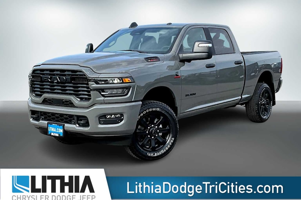 Lithia Chrysler Dodge Jeep Ram of Tri-Cities is pleased to offer this Ceramic Gray Clearcoat 2026 Ram 2500 Big Horn for purchase, this vehicle is well equipped with many features including:Big Horn Level 1 Plus Equipment Group (12 Touchscreen Display, 2 Way Rear Headrest Seat, 2nd Row In Floor Storage Bins, 4 Way Front Headrests, 40/20/40 Split Bench Seat, 4G LTE Wi-Fi Hot Spot, 9 Alpine Speakers w/Subwoofer, Air Conditioning ATC w/Dual Zone Control, Alexa Built-In, Anti-Spin Differential Rear Axle, Apple CarPlay, Auto Power-Folding Mirrors, Auto-Dimming Rear-View Mirror, Black Exterior Mirrors, Connected Travel & Traffic Services, Connectivity - US/Canada, Disassociated Touchscreen Display, Dual Glove Boxes, Emergency Vehicle Alert System (EVAS), Exterior Mirrors Courtesy Lamps, Exterior Mirrors w/Heating Element, Exterior Mirrors w/Supplemental Signals, Foam Bottle Insert (Door Trim Panel), Folding Flat Load Floor Storage, Footwell Courtesy Lamp, For Details, Visit DriveUconnect.com, For More Info, Call 800-643-2112, Forward & Reverse Utility Lights, Front Armrest w/Cupholders, Front Center Seat Cushion Storage, Front Seat Back Map Pockets, Global Telematics Box Module (TBM), Glove Box Lamp, Google Android Auto, GPS Antenna Input, GPS Navigation, HD Radio, Integrated Voice Command w/Bluetooth, LED Bed Lighting, Locking Lower Glove Box, Luxury Steering Wheel, Manual Adjust 4-Way Front Passenger Seat, Mirror Running Lights, MOPAR Deployable Bed Step, MOPAR Spray In Bedliner, Off-Road Info Pages, Power 2-Way Driver Lumbar Adjust, Power Adjust 8-Way Driver Seat, Power Adjust Mirrors, Power Heated Folding Telescopic Mirrors, Power Telescoping Mirrors, Power-Adjustable Convex Aux Mirrors, Premium Cloth 40/20/40 Bench Seat, Radio: Uconnect 5 Nav w/12.0 Display, Rear 60/40 Folding Seat, Rear Dome w/On/Off Switch Lamp, Remote Start System, Remote USB Port - Charge Only, Selectable Tire Fill Alert, SiriusXM Radio Service, SiriusXM w/360L, Steering Wheel Mounted Audio Controls, Storage Tray, and Trailer Tow Pages), Heated Seats & Wheel Group (Heated Front Seats and Heated Steering Wheel), Night Edition (Black Exterior Truck Badging, Black Interior Accents, Black Wheel Center Hub, Body Color Grille-Surround, Gloss Black Nostrils/Mic Black Grille, Painted Front Bumper, Painted Rear Bumper, and Wheels: 20 x 8.0 Black Painted Aluminum), Quick Order Package 24Z Big Horn, Towing Technology Group (Blind Spot & Cross Path Detection, CTR Stop Lamp w/Cargo View Camera, LED Tail Lamps, Red Tail Lamp Bezels, Surround View Camera System, Trailer Reverse Guidance, and Trailer Tire Pressure Monitoring System), 4-Wheel Disc Brakes, 5th Wheel/Gooseneck Towing Prep Group, 6 Speakers, ABS brakes, Air Conditioning, Alloy wheels, AM/FM radio: SiriusXM, Apple CarPlay/Android Auto, Brake assist, Bumpers: chrome, Center Hub, Cloth 40/20/40 Bench Seat, Compass, Dash Pass Thru Wire Circuits, Delay-off headlights, Driver door bin, Dual front impact airbags, Dual front side impact airbags, Electronic Stability Control, Front anti-roll bar, Front Center Armrest w/Storage, Front fog lights, Front License Plate Bracket, Front reading lights, Fully automatic headlights, Heated door mirrors, I/P Mounted Auxiliary Switches, Illuminated entry, Low tire pressure warning, Manual Adjust 4-Way Driver Seat, Manufacturers Statement of Origin, MOPAR Front & Rear Rubber Floor Mats, Occupant sensing airbag, Outside temperature display, Overhead airbag, Overhead console, Panic alarm, ParkView Rear Back-Up Camera, Passenger door bin, Passenger vanity mirror, Power door mirrors, Power steering, Power windows, Radio data system, Radio: Uconnect 5 w/8.4 Display, Rear anti-roll bar, Rear Folding Seat, Rear seat center armrest, Rear step bumper, Rear window defroster, Remote keyless entry, Security system, Speed control, Tachometer, Ti Price includes: $1000 - 2026 National Bonus Cash . Exp. 11/03/2