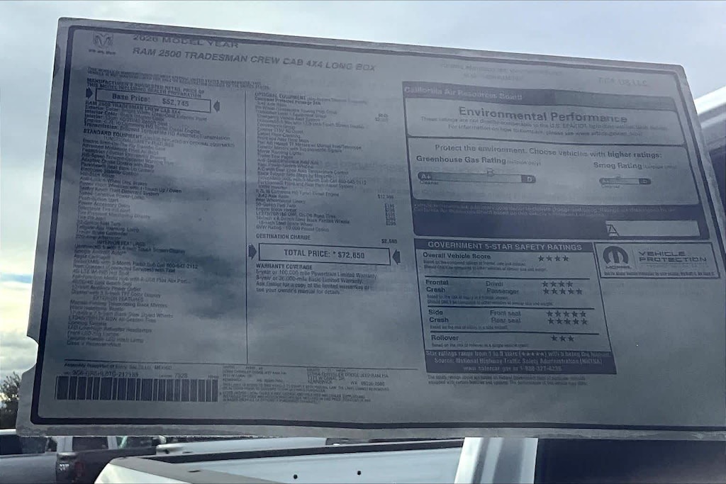 Lithia Chrysler Dodge Jeep Ram of Tri-Cities is pleased to offer this Bright White Clearcoat 2026 Ram 2500 Tradesman for purchase, this vehicle is well equipped with many features including:Quick Order Package 24A Tradesman, Tradesman Level 1 Equipment Group (115-Volt Auxiliary Front Power Outlet, 12 Touchscreen Display, 400W Inverter, 4G LTE Wi-Fi Hot Spot, Air Conditioning ATC with Dual Zone Control, Alexa Built-in, Anti-Spin Differential Rear Axle, Apple CarPlay, Auto-Dimming Rear-View Mirror, Connected Travel and Traffic Services, Connectivity - US/Canada, Disassociated Touchscreen Display, Emergency Vehicle Alert System (EVAS), Exterior 115V AC Outlet, For Details, Visit DriveUconnect.com, For More Info, Call 800-643-2112, Global Telematics Box Module, Google Android Auto, GPS Antenna Input, GPS Navigation, HD Radio, Integrated Voice Command with Bluetooth, Off-Road Info Pages, Radio: Uconnect 5 Navigation with 12.0 Display, Rear Power Sliding Window, Selectable Tire Fill Alert, SiriusXM Radio Service, SiriusXM with 360L, Tinted Acoustic Windshield Glass, and Trailer Tow Pages), 2 Way Rear Headrest Seat, 4 Way Front Headrests, 4-Wheel Disc Brakes, 40/20/40 Split Bench Seat, 50 Gallon Fuel Tank, 5th Wheel/Gooseneck Towing Prep Group, 6 Speakers, ABS brakes, Air Conditioning, AM/FM radio: SiriusXM, Apple CarPlay/Android Auto, Black Exterior Mirrors, Black Wheel Center Hub, Brake assist, Compass, Delay-off headlights, Driver door bin, Dual front impact airbags, Dual front side impact airbags, Electronic Stability Control, Engine Block Heater, Front anti-roll bar, Front Armrest with Cupholders, Front Center Armrest w/Storage, Front fog lights, Front License Plate Bracket, Front reading lights, Fully automatic headlights, Illuminated entry, Low tire pressure warning, Manual Adjust 4-Way Driver Seat, Manual Adjust 4-Way Front Passenger Seat, Manual Folding Exterior Mirrors, Manual Telescoping Mirrors, Manufacturers Statement of Origin, Mopar Black Tubular Side Steps, Occupant sensing airbag, Outside temperature display, Overhead airbag, Overhead console, Panic alarm, ParkView Rear Back-Up Camera, Passenger door bin, Passenger vanity mirror, Power steering, Power windows, Radio data system, Radio: Uconnect 5 with 8.4 Display, Rear anti-roll bar, Rear Folding Seat, Rear step bumper, Rear Wheelhouse Liners, Rear window defroster, Remote keyless entry, Remote USB Port - Charge Only, Speed control, Storage Tray, Tachometer, Tilt steering wheel, Traction control, Variably intermittent wipers, Voltmeter, Wheels: 17 x 7.5 Black Steel Styled, and Wheels: 18 x 8.0 Black Painted SteeL.