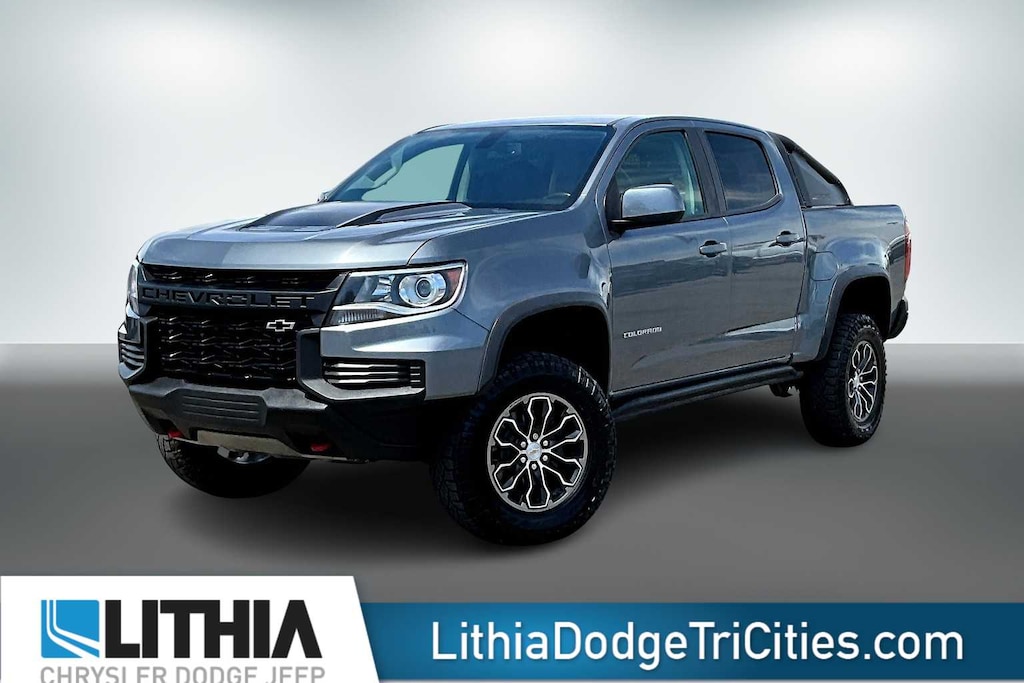 Lithia Chrysler Dodge Jeep Ram of Tri-Cities is pleased to offer this Steel Metallic 2021 Chevrolet Colorado ZR2 for purchase, this vehicle is well equipped with many features including:Heavy-Duty Trailering Package, Preferred Equipment Group 4ZR (Black Rear Bumpers, Black Spray-On Bedliner w/Chevrolet Logo, Driver-Selectable Full-Locking Front Differential, Driver-Selectable Full-Locking Rear Differential, Hitch Guidance, Integrated Trailer Brake Controller, and Tow/Haul Mode), ZR2 Off-Road Package, 4WD, 2 USB Data Ports w/SD Card Reader, 3.42 Rear Axle Ratio, 4-Way Power Front Passenger Seat Adjuster, 4-Wheel Disc Brakes, 6 Speakers, 6-Speaker Audio System Feature, ABS brakes, Air Conditioning, Alloy wheels, AM/FM radio: SiriusXM, Apple CarPlay/Android Auto, Auto-dimming Rear-View mirror, Automatic temperature control, Bose Premium 7-Speaker Audio System Feature, Compass, Delay-off headlights, Driver 6-Way Power Seat Adjuster, Driver door bin, Driver vanity mirror, Dual front impact airbags, Dual front side impact airbags, Electronic Stability Control, Engine Block Heater, Exterior Parking Camera Rear, Front anti-roll bar, Front Bucket Seats, Front Center Armrest, Front License Plate Kit, Front reading lights, Front wheel independent suspension, Fully automatic headlights, HD Radio, Heated door mirrors, Heated Driver & Front Passenger Seats, Heated front seats, Heated steering wheel, Illuminated entry, Leather-Appointed Seat Trim, Low tire pressure warning, Occupant sensing airbag, Outside temperature display, Overhead airbag, Overhead console, Panic alarm, Passenger door bin, Passenger vanity mirror, Power door mirrors, Power Driver Lumbar Control Seat Adjuster, Power driver seat, Power Passenger Lumbar Control Seat Adjuster, Power passenger seat, Power steering, Power windows, Premium audio system: Chevrolet Infotainment 3 Plus, Radio data system, Radio: Chevrolet Infotainment 3 Plus System, Radio: Chevrolet Infotainment 3 Plus System w/Navi, Rear reading lights, Rear seat center armrest, Rear step bumper, Rear window defroster, Remote keyless entry, Security system, SiriusXM Radio, Speed control, Speed-sensing steering, Steering wheel mounted audio controls, Tachometer, Telescoping steering wheel, Tilt steering wheel, Traction control, Trip computer, Variably intermittent wipers, and Wheels: 17 x 8 Graphite & Oxide Gold Aluminum. 2021 Chevrolet Colorado ZR2 4WD.