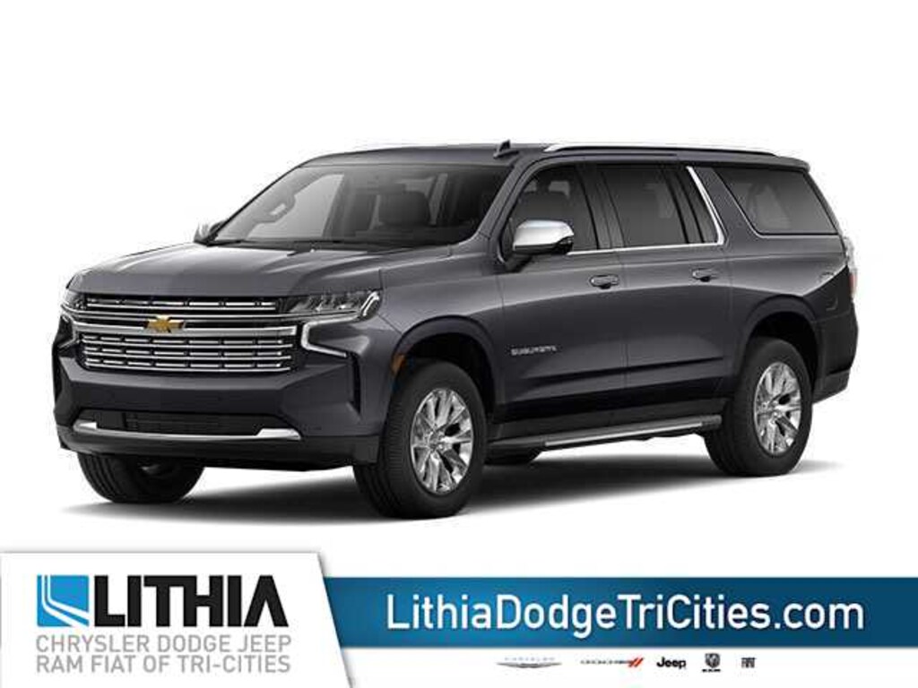 Lithia Chrysler Dodge Jeep Ram of Tri-Cities is pleased to offer this Dark Ash Metallic 2023 Chevrolet Suburban Premier for purchase, this vehicle is well equipped with many features including:License Plate Front Mounting Package, Preferred Equipment Group 1LZ (1st & 2nd Row Color-Keyed Carpeted Floor Mats, 2-Speed Active Electronic AutoTrac Transfer Case, 3rd Row 60/40 Power-Folding Split-Bench, Auto-Dimming Inside Rear-View Mirror, Bose 10-Speaker Surround w/CenterPoint, Bright Front & Rear Door Sill Plates, Chrome Door Handles w/Body-Color Strip, Chrome Mirror Caps, Color-Keyed Carpeting Floor Covering, Driver & Front Outboard Passenger Airbags, Dual Exhaust System, Enhanced Driver Information Center, Floor Console, Hands-Free Rear Power Programmable Liftgate, Heated & Ventilated Driver & Front Passenger Seats, Heated 2nd Row Outboard Seats, Heated Driver & Front Passenger Seats, Heated Steering Wheel, Hill Descent Control, Infotainment Display, Lane Change Alert w/Side Blind Zone Alert, LED Daytime Running Lamps, Memory Settings, Outside Heated Power-Adjustable Mirrors, Power Release 2nd Row Bucket Seats, Power Tilt & Telescopic Steering Column, Rear Cross Traffic Alert, Remote Start, Safety Alert Seat, SiriusXM Radio w/360L, Universal Home Remote, Wireless Charging, and Wrapped Steering Wheel), 10 Speakers, 20 x 9 Polished Aluminum Wheels, 3.23 Rear Axle Ratio, 3rd row seats: split-bench, 4-Wheel Disc Brakes, ABS brakes, Adaptive suspension, Air Conditioning, Alloy wheels, AM/FM radio: SiriusXM with 360L, Apple CarPlay/Android Auto, Auto High-beam Headlights, Auto-dimming door mirrors, Auto-dimming Rear-View mirror, Auto-leveling suspension, Automatic temperature control, Brake assist, Bumpers: body-color, Compass, Delay-off headlights, Deleted 3 Years of Remote Access, Driver door bin, Driver vanity mirror, Dual front impact airbags, Dual front side impact airbags, Electronic Stability Control, Emergency communication system: OnStar and Chevrolet connected services capable, Four wheel independent suspension, Front anti-roll bar, Front Bucket Seats, Front Center Armrest, Front dual zone A/C, Front reading lights, Fully automatic headlights, Garage door transmitter, Heated door mirrors, Heated front seats, Heated rear seats, Heated steering wheel, Illuminated entry, Low tire pressure warning, Magnetic Ride Control Suspension, Memory seat, Navigation System, Occupant sensing airbag, Outside temperature display, Overhead airbag, Overhead console, Panic alarm, Passenger door bin, Passenger vanity mirror, Perforated Leather Seating Surfaces, Power door mirrors, Power driver seat, Power Liftgate, Power passenger seat, Power steering, Power windows, Premium audio system: Chevrolet Infotainment 3 Premium, Radio: Chevrolet Infotainment 3 Premium System, Rain sensing wipers, Rear air conditioning, Rear anti-roll bar, Rear reading lights, Rear window defroster, Rear window wiper, Remote keyless entry, Roof rack: rails only, Security system, Speed control, Speed-sensing steering, Split folding rear seat, Spoiler, Steering wheel memory, Steering wheel mounted audio controls, Tachometer, Telescoping steering wheel, Tilt steering wheel, Traction control, Trip computer, Turn signal indicator mirrors, Variably intermittent wipers, Ventilated front seats, and Voltmeter. 2023 Chevrolet Suburban Premier
