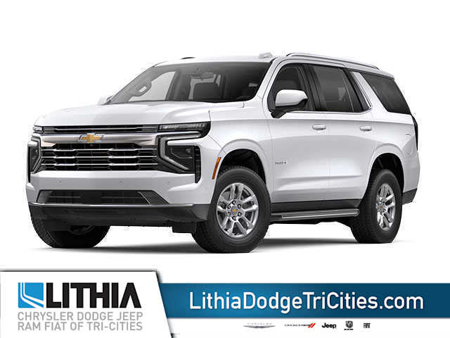 Lithia Chrysler Dodge Jeep Ram of Tri-Cities is pleased to offer this Summit White 2025 Chevrolet Tahoe LT for purchase, this vehicle is well equipped with many features including:License Plate Front Mounting Package, Preferred Equipment Group 1LT (1st and 2nd Row Color-Keyed Carpeted Floor Mats, 3-Spoke Wrapped Steering Wheel, 3rd Row Manual 60/40 Split-Folding Bench Seats, Color-Keyed Carpeting Floor Covering, Floor Console with Storage Area, Front Bucket Seats, Front Pedestrian and Bicyclist Braking, Frontal Driver and Outboard Passenger Airbags, Memory Settings For Driver, Rear Power Liftgate, Remote Start, SiriusXM with 360L Trial Subscription, USB Ports, and Wireless Phone Charging), 4WD, Black Leather, 2-Way Power Driver Lumbar Seat Adjuster, 2-Way Power Front Passenger Lumbar Seat Adjuster, 3.23 Rear Axle Ratio, 3rd row seats: split-bench, 4-Wheel Disc Brakes, 6 Speakers, 6-Speaker Audio System Feature, 8-Way Power Driver Seat Adjuster, 8-Way Power Front Passenger Seat Adjuster, ABS brakes, Air Conditioning, Alloy wheels, AM/FM radio: SiriusXM with 360L, Apple CarPlay/Android Auto, Auto High-beam Headlights, Automatic temperature control, Brake assist, Bumpers: body-color, Compass, Delay-off headlights, Driver door bin, Driver vanity mirror, Dual front impact airbags, Dual front side impact airbags, Electronic Stability Control, Emergency communication system: OnStar and Chevrolet connected services capable, Exterior Parking Camera Rear, Four wheel independent suspension, Front anti-roll bar, Front Center Armrest, Front dual zone A/C, Front reading lights, Fully automatic headlights, Heated door mirrors, Heated Driver and Front Passenger Seats, Heated front seats, Illuminated entry, Leather-Appointed Seat Trim, Low tire pressure warning, Memory seat, Navigation system: Google built-in compatibility (select service plan required, terms and limitations apply), Occupant sensing airbag, Outside temperature display, Overhead airbag, Overhead console, Panic alarm, Passenger door bin, Passenger vanity mirror, Power door mirrors, Power driver seat, Power Liftgate, Power passenger seat, Power steering, Power windows, Premium audio system: Chevrolet Infotainment 3 Premium, Premium Smooth Ride Suspension, Radio data system, Radio: 17.7 Diagonal Advanced Color LCD Display, Rain sensing wipers, Rear air conditioning, Rear anti-roll bar, Rear reading lights, Rear seat center armrest, Rear window defroster, Rear window wiper, Remote keyless entry, Security system, Speed control, Speed-sensing steering, Split folding rear seat, Spoiler, Steering wheel mounted audio controls, Tachometer, Telescoping steering wheel, Tilt steering wheel, Traction control, Trip computer, Variably intermittent wipers, Voltmeter, and Wheels: 18 x 8.5 Bright Silver Painted Aluminum. 2025 Chevrolet Tahoe LT 4WD, Black Leather.