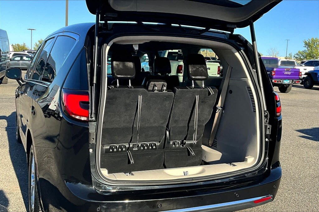 Lithia Chrysler Dodge Jeep Ram of Tri-Cities is pleased to offer this Brilliant Black Crystal Pearlcoat 2023 Chrysler Pacifica Touring L for purchase, this vehicle is well equipped with many features including:Quick Order Package 27L, 10.1 Touchscreen Display, 17 x 7.0 Aluminum Wheels, 3.25 Axle Ratio, 3rd row seats: split-bench, 4-Wheel Disc Brakes, 6 Speakers, ABS brakes, Air Conditioning, Alloy wheels, AM/FM radio: SiriusXM, Apple CarPlay, Apple CarPlay/Android Auto, Audio memory, Automatic temperature control, Black Seats, Brake assist, Bumpers: body-color, Caprice Leatherette Bucket Seats, Compass, Delay-off headlights, Disassociated Touchscreen Display, Driver door bin, Driver vanity mirror, Drivers Seat Mounted Armrest, Dual front impact airbags, Dual front side impact airbags, Electronic Stability Control, Four wheel independent suspension, Front anti-roll bar, Front Bucket Seats, Front dual zone A/C, Front Fascia Air Deflectors, Front fog lights, Front reading lights, Fully automatic headlights, Google Android Auto, GPS Antenna Input, Heated door mirrors, Heated front seats, Heated steering wheel, Illuminated entry, Integrated Active Noise Cancellation, Integrated Center Stack Radio, Knee airbag, Low tire pressure warning, Memory seat, Occupant sensing airbag, Outside temperature display, Overhead airbag, Overhead console, Panic alarm, ParkView Rear Back-Up Camera, Passenger door bin, Passenger seat mounted armrest, Passenger vanity mirror, Power door mirrors, Power driver seat, Power Liftgate, Power steering, Power windows, Radio data system, Radio: Uconnect 5 w/10.1 Display, Rain sensing wipers, Rear air conditioning, Rear reading lights, Rear window defroster, Rear window wiper, Reclining 3rd row seat, Remote keyless entry, Security system, Speed control, Split folding rear seat, Spoiler, Steering wheel mounted audio controls, Tachometer, Telescoping steering wheel, Tilt steering wheel, Touring Suspension, Traction control, Trip computer, Turn signal indicator mirrors, USB Host Flip, Variably intermittent wipers, and Voltmeter. 2023 Chrysler Pacifica Touring L