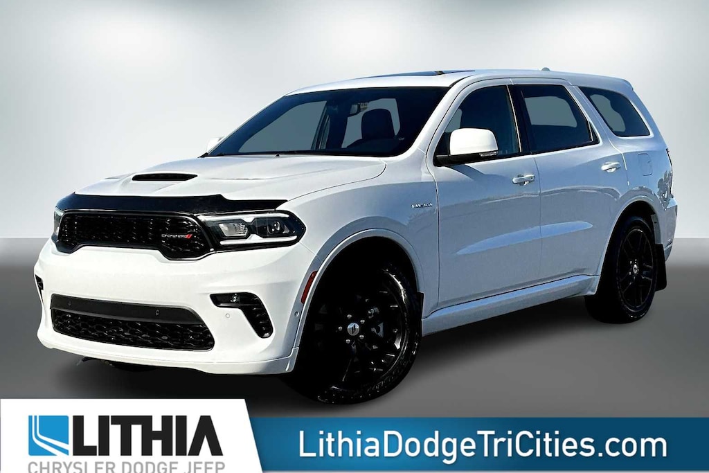 Lithia Chrysler Dodge Jeep Ram of Tri-Cities is pleased to offer this White Knuckle Clearcoat 2021 Dodge Durango R/T for purchase, this vehicle is well equipped with many features including:Quick Order Package 22S, AWD, 10.1 Touchscreen Display, 3.09 Rear Axle Ratio, 3rd row seats: split-bench, 4-Wheel Disc Brakes, 4G LTE Wi-Fi Hot Spot, 9 Speakers, ABS brakes, Air Conditioning, Alloy wheels, AM/FM radio: SiriusXM w/360L, Anti-whiplash front head restraints, Apple CarPlay, Apple CarPlay/Android Auto, Audio memory, Auto High-beam Headlights, Auto-dimming door mirrors, Auto-dimming Rear-View mirror, Auto-leveling suspension, Automatic temperature control, Brake assist, Bumpers: body-color, Compass, Connected Travel & Traffic Services, Delay-off headlights, Disassociated Touchscreen Display, Driver door bin, Driver vanity mirror, Dual front impact airbags, Dual front side impact airbags, Electronic Stability Control, Emergency communication system: SiriusXM Guardian, Four wheel independent suspension, Front anti-roll bar, Front Bucket Seats, Front Center Armrest w/Storage, Front dual zone A/C, Front fog lights, Front reading lights, Fully automatic headlights, Garage door transmitter, Global Telematics Box Module (TBM), Google Android Auto, GPS Antenna Input, GPS Navigation, HD Radio, Heated door mirrors, Heated front seats, Heated rear seats, Heated steering wheel, Heavy-Duty Engine Cooling, Hemi Badge, Illuminated entry, Integrated Center Stack Radio, Integrated Voice Command w/Bluetooth, Knee airbag, Leather steering wheel, Leather Suede Bucket Seats, Low tire pressure warning, Memory seat, Navigation system: TomTom, Occupant sensing airbag, Outside temperature display, Overhead airbag, Overhead console, Panic alarm, ParkView Rear Back-Up Camera, Passenger door bin, Passenger vanity mirror, Power door mirrors, Power driver seat, Power Liftgate, Power passenger seat, Power steering, Power Sunroof, Power windows, Radio data system, Radio: Uconnect 5 Nav w/10.1 Display, Rain sensing wipers, Rear air conditioning, Rear anti-roll bar, Rear Load Leveling Suspension, Rear reading lights, Rear seat center armrest, Rear window defroster, Rear window wiper, Remote keyless entry, Security system, SiriusXM Guardian - Included Trial (B), SiriusXM Satellite Radio, SiriusXM w/360L, Speed control, Speed-sensing steering, Speed-Sensitive Wipers, Split folding rear seat, Spoiler, Steering wheel mounted audio controls, Tachometer, Telescoping steering wheel, Tilt steering wheel, Traction control, Trip computer, Turn signal indicator mirrors, USB Host Flip, Variably intermittent wipers, Voltmeter, and Wheels: 20 x 8.0 Fine Silver. 2021 Dodge Durango R/T AWD.