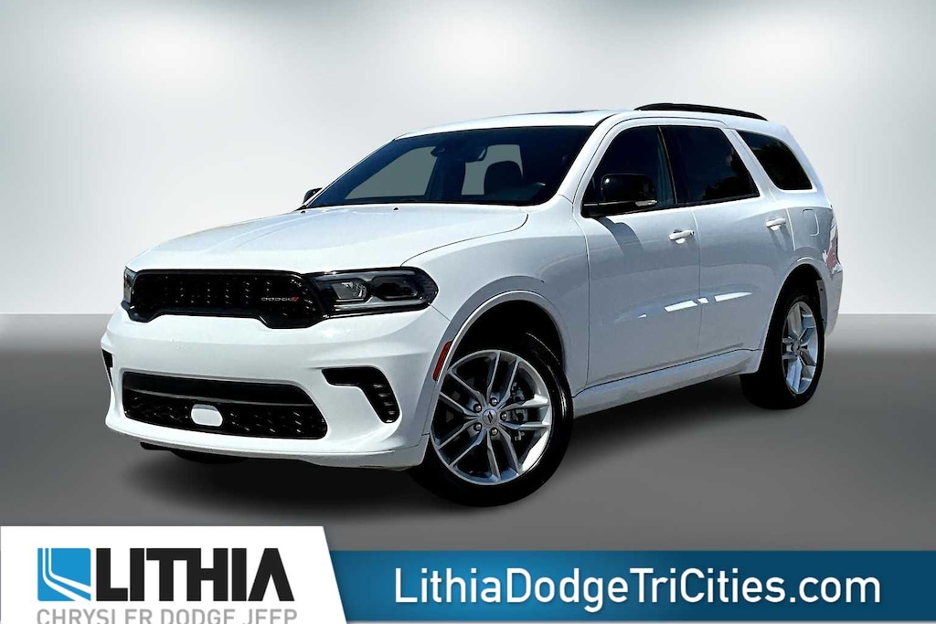 Lithia Chrysler Dodge Jeep Ram of Tri-Cities is pleased to offer this White Knuckle Clearcoat 2024 Dodge Durango GT Plus for purchase, this vehicle is well equipped with many features including:Quick Order Package 2BG GT Plus (1-Year Trial (Registration Required), 10.1 Touchscreen Display, 115V Auxiliary Power Outlet, 180 Amp Alternator, 4G LTE Wi-Fi Hot Spot, 7 & 4 Pin Wiring Harness, Adaptive Cruise Control w/Stop, Apple CarPlay, Auto-Dimming Exterior Driver Mirror, Black Roof Rails, Blind Spot w/Trailer Detection, Class IV Receiver Hitch, Connected Travel & Traffic Services, Disassociated Touchscreen Display, Dual Remote USB Port - Charge Only, Exterior Mirrors w/Heating Element, Exterior Mirrors w/Memory, Exterior Mirrors w/Supplemental Signals, Floor Console w/Leather Armrest, For Details Visit DriveUconnect.com, Full Speed Forward Collision Warning Plus, Global Telematics Box Module (TBM), Gloss Black Exterior Mirrors, Google Android Auto, GPS Antenna Input, GPS Navigation, HD Radio, Heated Second Row Seats, Heavy-Duty Engine Cooling, Integrated Center Stack Radio, Integrated Roof Rail Crossbars, Integrated Voice Command w/Bluetooth, Leather Trimmed Bucket Seats, Leather Wrapped Door Panels, LED Auxiliary Low Beam & Turn Signal, Power 6x9 Multi-Function Foldaway Mirrors, Power 8-Way Driver Memory 8-Way Passenger Seats, Power Driver/Passenger 4-Way Lumbar Adjust, Power Sunroof, Power Tilt & Telescopic Steering Column, Radio: Uconnect 5 Nav w/10.1 Display, Radio/Driver Seat/Mirrors Memory, Rear Load Leveling Suspension, Red Accent Stitching, SiriusXM Guardian - Included Trial (B), SiriusXM w/360L, Trailer Brake Control, USB Host Flip, and Ventilated Front Seats), AWD, 3.45 Rear Axle Ratio, 3rd row seats: split-bench, 4-Wheel Disc Brakes, 6 Speakers, ABS brakes, Air Conditioning, Alloy wheels, AM/FM radio: SiriusXM, Apple CarPlay/Android Auto, Auto-dimming Rear-View mirror, Automatic temperature control, Brake assist, Bumpers: body-color, Cloth Bucket Seats w/Shift Insert, Compass, Delay-off headlights, Driver door bin, Driver vanity mirror, Dual front impact airbags, Dual front side impact airbags, Electronic Stability Control, Four wheel independent suspension, Front anti-roll bar, Front Bucket Seats, Front Center Armrest w/Storage, Front dual zone A/C, Front License Plate Bracket, Front reading lights, Fully automatic headlights, Garage door transmitter, Heated door mirrors, Heated front seats, Heated steering wheel, Illuminated entry, Knee airbag, Leather steering wheel, Low tire pressure warning, Occupant sensing airbag, Outside temperature display, Overhead airbag, Overhead console, Panic alarm, ParkView Rear Back-Up Camera, Passenger door bin, Passenger vanity mirror, Power door mirrors, Power driver seat, Power Liftgate, Power steering, Power windows, Radio data system, Radio: Uconnect 4 w/8.4 Display, Rear air conditioning, Rear anti-roll bar, Rear reading lights, Rear seat center armrest, Rear window defroster, Rear window wiper, Remote keyless entry, Speed control, Speed-sensing steering, Speed-Sensitive Wipers, Split folding rear seat, Spoiler, Sport steering wheel, Steering wheel mounted audio controls, Tachometer, Telescoping steering wheel, Tilt steering wheel, Traction control, Trip computer, Variably intermittent wipers, Voltmeter, and Wheels: 20 x 8.0 Fine SilveR. 2024 Dodge Durango GT Plus AWD.