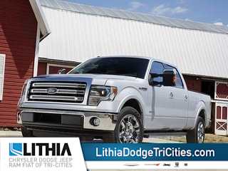 Lithia Chrysler Dodge Jeep Ram of Tri-Cities is pleased to offer this Brown 2013 Ford F-150 Lariat for purchase, this vehicle is well equipped with many features including:Equipment Group 502A Luxury, GVWR: 7,350 lbs Payload Package, 4WD, 18 Bright Aluminum Wheels, 4 Speakers, 4-Wheel Disc Brakes, 6 Chrome Angular Step Bars, ABS brakes, Adjustable pedals, Air Conditioning, All-Weather Rubber Floor Mats, Alloy wheels, AM/FM radio: SiriusXM, Auto-dimming door mirrors, Auto-dimming Rear-View mirror, Automatic temperature control, Bumpers: chrome, CD player, Compass, Delay-off headlights, Driver door bin, Driver vanity mirror, Dual front impact airbags, Dual front side impact airbags, Electronic Stability Control, Front anti-roll bar, Front Center Armrest w/Storage, Front dual zone A/C, Front fog lights, Front License Plate Bracket, Front reading lights, Front wheel independent suspension, Fully automatic headlights, Heated door mirrors, Heated front seats, Illuminated entry, Leather steering wheel, Leather-Trimmed 40/20/40 Front Seat, Low tire pressure warning, Memory seat, Occupant sensing airbag, Outside temperature display, Overhead airbag, Overhead console, Panic alarm, Passenger door bin, Passenger vanity mirror, Pedal memory, Power door mirrors, Power driver seat, Power passenger seat, Power steering, Power windows, Radio data system, Radio: AM/FM Stereo/Clock/Single-CD, Rear reading lights, Rear seat center armrest, Rear step bumper, Rear window defroster, Remote keyless entry, Security system, SiriusXM Satellite Radio, Speed control, Speed-sensing steering, Split folding rear seat, Steering wheel mounted audio controls, SYNC w/MyFord Touch, Tachometer, Tailgate Step, Tilt steering wheel, Traction control, Trip computer, Turn signal indicator mirrors, and Variably intermittent wipers. 2013 Ford F-150 Lariat 4WD.