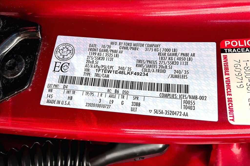 Lithia Chrysler Dodge Jeep Ram of Tri-Cities is pleased to offer this Red 2020 Ford F-150 Lariat for purchase, this vehicle is well equipped with many features including:GVWR: 7,050 lbs Payload Package, 4WD, 18 Machined-Aluminum Wheels, 3.31 Axle Ratio, 4-Wheel Disc Brakes, 7 Speakers, ABS brakes, Adjustable pedals, Air Conditioning, Alloy wheels, AM/FM radio: SiriusXM, Auto High-beam Headlights, Auto-dimming door mirrors, Auto-dimming Rear-View mirror, Automatic temperature control, Brake assist, Bumpers: chrome, Class IV Trailer Hitch Receiver, Compass, Delay-off headlights, Driver door bin, Driver vanity mirror, Dual front impact airbags, Dual front side impact airbags, Electronic Stability Control, Emergency communication system: SYNC 3 911 Assist, Exterior Parking Camera Rear, Front anti-roll bar, Front Center Armrest w/Storage, Front dual zone A/C, Front fog lights, Front reading lights, Front wheel independent suspension, Fully automatic headlights, Heated door mirrors, Heated front seats, Illuminated entry, Leather-Trimmed 40/20/40 Front Seat, Low tire pressure warning, Memory seat, Occupant sensing airbag, Outside temperature display, Overhead airbag, Overhead console, Panic alarm, Passenger door bin, Passenger vanity mirror, Pedal memory, Power door mirrors, Power driver seat, Power passenger seat, Power steering, Power windows, Radio data system, Radio: AM/FM Stereo w/6 Speakers, Rear reading lights, Rear seat center armrest, Rear step bumper, Rear window defroster, Remote keyless entry, Security system, SiriusXM Radio, Speed control, Speed-sensing steering, Split folding rear seat, Steering wheel mounted audio controls, SYNC 3, Tachometer, Telescoping steering wheel, Tilt steering wheel, Traction control, Trip computer, Turn signal indicator mirrors, Variably intermittent wipers, Ventilated front seats, and Voltmeter. 2020 Ford F-150 Lariat 4WD.