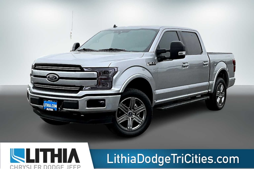 Lithia Chrysler Dodge Jeep Ram of Tri-Cities is pleased to offer this Silver 2020 Ford F-150 Lariat for purchase, this vehicle is well equipped with many features including:GVWR: 6,600 lbs Payload Package, 4WD, 18 Machined-Aluminum Wheels, 3.55 Axle Ratio, 4-Wheel Disc Brakes, 7 Speakers, ABS brakes, Adjustable pedals, Air Conditioning, Alloy wheels, AM/FM radio: SiriusXM, Auto High-beam Headlights, Auto-dimming door mirrors, Auto-dimming Rear-View mirror, Automatic temperature control, Brake assist, Bumpers: chrome, Class IV Trailer Hitch Receiver, Compass, Delay-off headlights, Driver door bin, Driver vanity mirror, Dual front impact airbags, Dual front side impact airbags, Electronic Stability Control, Emergency communication system: SYNC 3 911 Assist, Exterior Parking Camera Rear, Front anti-roll bar, Front Center Armrest w/Storage, Front dual zone A/C, Front fog lights, Front reading lights, Front wheel independent suspension, Fully automatic headlights, Heated door mirrors, Heated front seats, Illuminated entry, Leather-Trimmed 40/20/40 Front Seat, Low tire pressure warning, Memory seat, Occupant sensing airbag, Outside temperature display, Overhead airbag, Overhead console, Panic alarm, Passenger door bin, Passenger vanity mirror, Pedal memory, Power door mirrors, Power driver seat, Power passenger seat, Power steering, Power windows, Radio data system, Radio: AM/FM Stereo w/6 Speakers, Rear reading lights, Rear seat center armrest, Rear step bumper, Rear window defroster, Remote keyless entry, Security system, SiriusXM Radio, Speed control, Speed-sensing steering, Split folding rear seat, Steering wheel mounted audio controls, SYNC 3, Tachometer, Telescoping steering wheel, Tilt steering wheel, Traction control, Trip computer, Turn signal indicator mirrors, Variably intermittent wipers, Ventilated front seats, and Voltmeter. 2020 Ford F-150 Lariat 4WD.