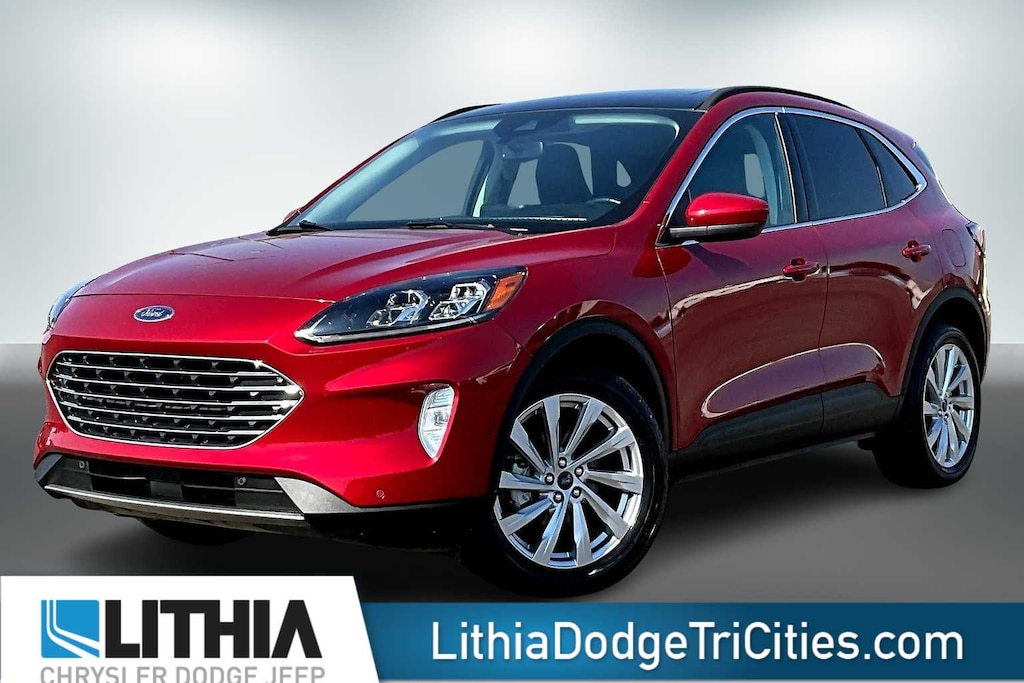 Lithia Chrysler Dodge Jeep Ram of Tri-Cities is pleased to offer this Red 2022 Ford Escape Titanium for purchase, this vehicle is well equipped with many features including:AWD, 3.47 Axle Ratio, 4-Wheel Disc Brakes, 6 Speakers, ABS brakes, Air Conditioning, Alloy wheels, AM/FM radio: SiriusXM, AM/FM Stereo, Auto High-beam Headlights, Auto-dimming Rear-View mirror, Automatic temperature control, Brake assist, Bumpers: body-color, Compass, Delay-off headlights, Driver door bin, Driver vanity mirror, Dual front impact airbags, Dual front side impact airbags, Electronic Stability Control, Emergency communication system: SYNC 3 911 Assist, Exterior Parking Camera Rear, FordPass Connect, Four wheel independent suspension, Front anti-roll bar, Front Bucket Seats, Front Center Armrest, Front dual zone A/C, Front fog lights, Front reading lights, Fully automatic headlights, Garage door transmitter, Heated ActiveX Trimmed Front Sport Contour Bucket Seats, Heated door mirrors, Heated front seats, Heated steering wheel, Illuminated entry, Knee airbag, Low tire pressure warning, Memory seat, Navigation System, Occupant sensing airbag, Outside temperature display, Overhead airbag, Overhead console, Panic alarm, Passenger door bin, Passenger vanity mirror, Power door mirrors, Power driver seat, Power Liftgate, Power passenger seat, Power steering, Power windows, Radio data system, Rain sensing wipers, Rear anti-roll bar, Rear reading lights, Rear seat center armrest, Rear window defroster, Rear window wiper, Remote keyless entry, Roof rack: rails only, Security system, Speed control, Speed-sensing steering, Speed-Sensitive Wipers, Split folding rear seat, Spoiler, Steering wheel mounted audio controls, SYNC 3 Communications & Entertainment System, Tachometer, Telescoping steering wheel, Tilt steering wheel, Traction control, Trip computer, Variably intermittent wipers, Voice-Activated Touchscreen Navigation System, and Wheels: 19 Machined-Face Aluminum. 2022 Ford Escape Titanium AWD.
