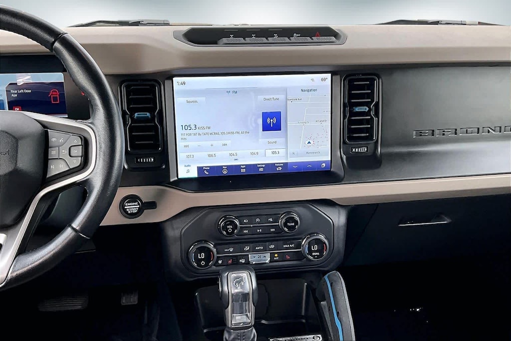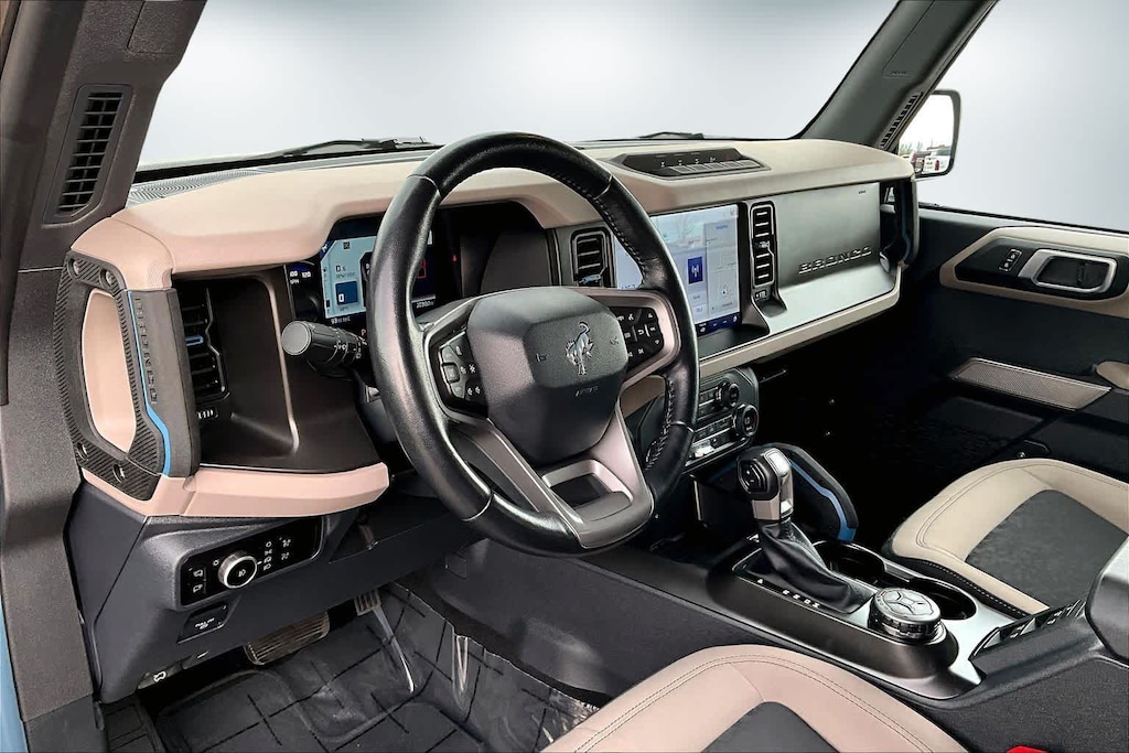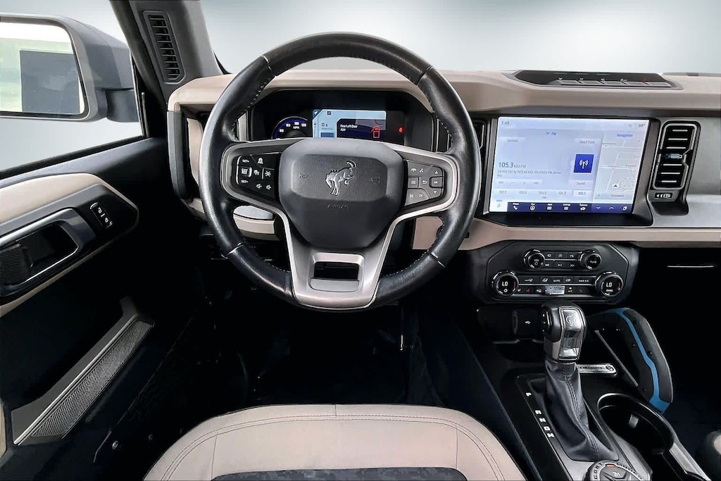 Lithia Chrysler Dodge Jeep Ram of Tri-Cities is pleased to offer this Blue 2023 Ford Bronco Wildtrak for purchase, this vehicle is well equipped with many features including:4-Wheel Disc Brakes, 7 Speakers, ABS brakes, Air Conditioning, AM/FM radio: SiriusXM with 360L, AM/FM Stereo, Auto High-beam Headlights, Brake assist, Compass, Delay-off headlights, Driver door bin, Driver vanity mirror, Dual front impact airbags, Dual front side impact airbags, Electronic Stability Control, Emergency communication system: 911 Assist, Exterior Parking Camera Rear, Front anti-roll bar, Front Bucket Seats, Front Center Armrest, Front reading lights, Front wheel independent suspension, Fully automatic headlights, Heated door mirrors, Illuminated entry, Integrated roll-over protection, Low tire pressure warning, Occupant sensing airbag, Outside temperature display, Overhead airbag, Overhead console, Panic alarm, Passenger door bin, Passenger vanity mirror, Power door mirrors, Power steering, Power windows, Radio data system, Remote keyless entry, Security system, SiriusXM Radio w/360L, Speed control, Split folding rear seat, Steering wheel mounted audio controls, SYNC 4, Tachometer, Telescoping steering wheel, Tilt steering wheel, Traction control, Trip computer, Variably intermittent wipers, and Wheels: 17 Black High Gloss-Painted Aluminum. 2023 Ford Bronco Wildtrak