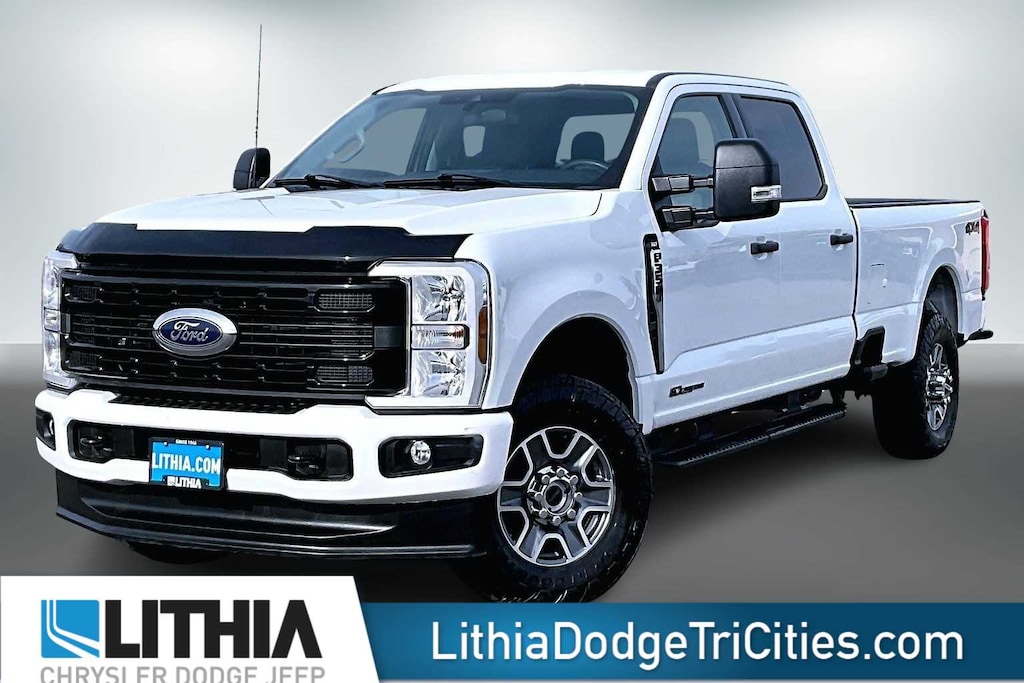 Lithia Chrysler Dodge Jeep Ram of Tri-Cities is pleased to offer this White 2024 Ford F-350SD XLT for purchase, this vehicle is well equipped with many features including:4WD, ABS brakes, Alloy wheels, Compass, Electronic Stability Control, Heated door mirrors, Illuminated entry, Low tire pressure warning, Remote keyless entry, Traction control, 190 Amp Alternator, 4-Wheel Disc Brakes, 6 Speakers, Air Conditioning, AM/FM radio, AM/FM Stereo w/MP3 Player, Auto High-beam Headlights, Brake assist, Bumpers: chrome, Cloth 40/20/40 Split Bench Seat, Delay-off headlights, Driver door bin, Driver vanity mirror, Dual front impact airbags, Dual front side impact airbags, Electronic-Locking w/3.73 Axle Ratio, Emergency communication system: SYNC 4 911 Assist, Exterior Parking Camera Rear, Front anti-roll bar, Front Center Armrest w/Storage, Front fog lights, Front reading lights, Fully automatic headlights, Outside temperature display, Overhead airbag, Overhead console, Panic alarm, Passenger door bin, Passenger vanity mirror, Power door mirrors, Power driver seat, Power steering, Power windows, Privacy Glass, Rear reading lights, Rear step bumper, Speed control, Split folding rear seat, Steering wheel mounted audio controls, SYNC 4, Tachometer, Telescoping steering wheel, Tilt steering wheel, Trip computer, Turn signal indicator mirrors, Variably intermittent wipers, and Wheels: 18 Sparkle Silver Painted Cast Aluminum. 2024 Ford F-350SD XLT 4WD, ABS brakes, Alloy wheels, Compass, Electronic Stability Control, Heated door mirrors, Illuminated entry, Low tire pressure warning, Remote keyless entry, Traction control.