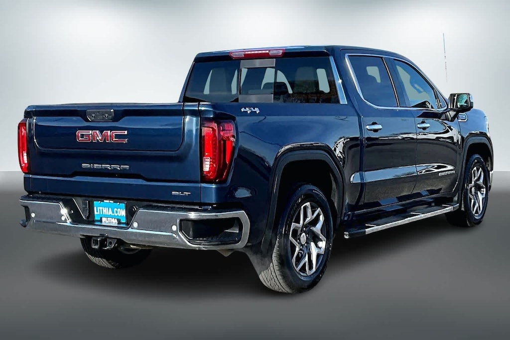 Lithia Chrysler Dodge Jeep Ram of Tri-Cities is pleased to offer this Pacific Blue Metallic 2023 GMC Sierra 1500 SLT for purchase, this vehicle is well equipped with many features including:High Capacity Suspension Package, Preferred Equipment Group 4SA (120-Volt Bed Mounted Power Outlet, 120-Volt Instrument Panel Power Outlet, 170 Amp Alternator, 2 Charge/Data USB Ports, 2 Type-C Charge-Only Rear USB Ports, 6-Speaker Audio System Feature, Auto-Locking Rear Differential, Auxiliary External Transmission Oil Cooler, Chrome Header & Chrome Grille Insert Bars, Color-Keyed Carpeting Floor Covering, Compass, Deep-Tinted Glass, Electric Rear-Window Defogger, Electrical Steering Column Lock, Front Frame-Mounted Black Recovery Hooks, Front Rainsensing Wipers, GMC Connected Access Capable, HD Rear Vision Camera, Keyless Open & Start, LED Cargo Area Lighting, Manual Tilt-Wheel & Telescoping Steering Column, OnStar & GMC Connected Services Capable, Perimeter Lighting, Power Door Locks, Power Front Passenger Windows w/Express Up/Down, Power Front Windows w/Driver Express Up/Down, Power Rear Windows w/Express Down, Push Button Start, Rear Wheelhouse Liners, Remote Vehicle Starter System, SiriusXM w/360L, Steering Wheel Audio Controls, Theft Deterrent System (Unauthorized Entry), Wi-Fi Hotspot Capable, and Wireless Phone Projection), ProGrade Trailering System (Hitch Guidance w/Hitch View, In-Vehicle Trailering App, and Integrated Trailer Brake Controller), Sierra Safety Plus Package (HD Surround Vision, Rear Cross Traffic Braking, Rear Pedestrian Detection, Safety Alert Seat, Trailer Camera Provisions, Trailer Side Blind Zone Alert, and Ultrasonic Front & Rear Park Assist), SLT Convenience Package (2 Charge/Data USB Ports Inside Center Console, Electronic Precision Shift, Floor-Mounted Center Console, Front Bucket Seats, Power Rake & Telescoping Steering Column, Premium Bose 7-Speaker Sound System, Ventilated Driver & Front Passenger Seats, and Wireless Charging), SLT Preferred Package (Adaptive Cruise Control, Heated 2nd Row Outboard Seats, Power Sliding Rear Window w/Rear Defogger, and Universal Home Remote), SLT Premium Plus Package (20 Polished Aluminum Wheels, Chrome Wheel To Wheel Assist Steps, and Spray-On Pickup Bed Liner w/GMC Logo), Standard Suspension Package, Trailering Package (Hitch Guidance), 10-Speed Automatic, 4WD, Dark Walnut/Slate Leather, 10-Way Power Driver Seat Adjuster w/Lumbar, 10-Way Power Passenger Seat Adjuster w/Lumbar, 3.23 Rear Axle Ratio, 4-Wheel Disc Brakes, 6 Speakers, ABS brakes, Air Conditioning, Alloy wheels, AM/FM radio, Apple CarPlay/Android Auto, Auto High-beam Headlights, Auto-dimming door mirrors, Auto-dimming Rear-View mirror, Automatic Emergency Braking, Automatic temperature control, Brake assist, Buckle to Drive, Bumpers: chrome, Delay-off headlights, Driver door bin, Driver Memory, Driver vanity mirror, Dual front impact airbags, Dual front side impact airbags, Electronic Stability Control, Emergency communication system: OnStar and GMC connected services capable, Engine Block Heater, Following Distance Indicator, Forward Collision Alert, Front 40/20/40 Split-Bench Seat, Front anti-roll bar, Front Center Armrest w/Storage, Front dual zone A/C, Front fog lights, Front Pedestrian Braking, Front reading lights, Front wheel independent suspension, Fully automatic headlights, Heated door mirrors, Heated Driver & Front Outboard Passenger Seating, Heated front seats, Heated steering wheel, Illuminated entry, IntelliBeam Automatic High Beam On/Off, Lane Keep Assist w/Lane Departure Warning, Low tire pressure warning, Memory seat, Navigation System, Not Equipped w/Steering Column Lock, Occupant sensing airbag, Outside temperature display, Overhead airbag, Overhead console, Panic alarm, Passenger door bin, Passenger vanity mirror, Perf Leather-Appointed Front Outboard Seat Trim, Power door mirrors, Power driver seat, Power passenger seat, Power steering, Power windows, Premium audio system: GMC Infotainm