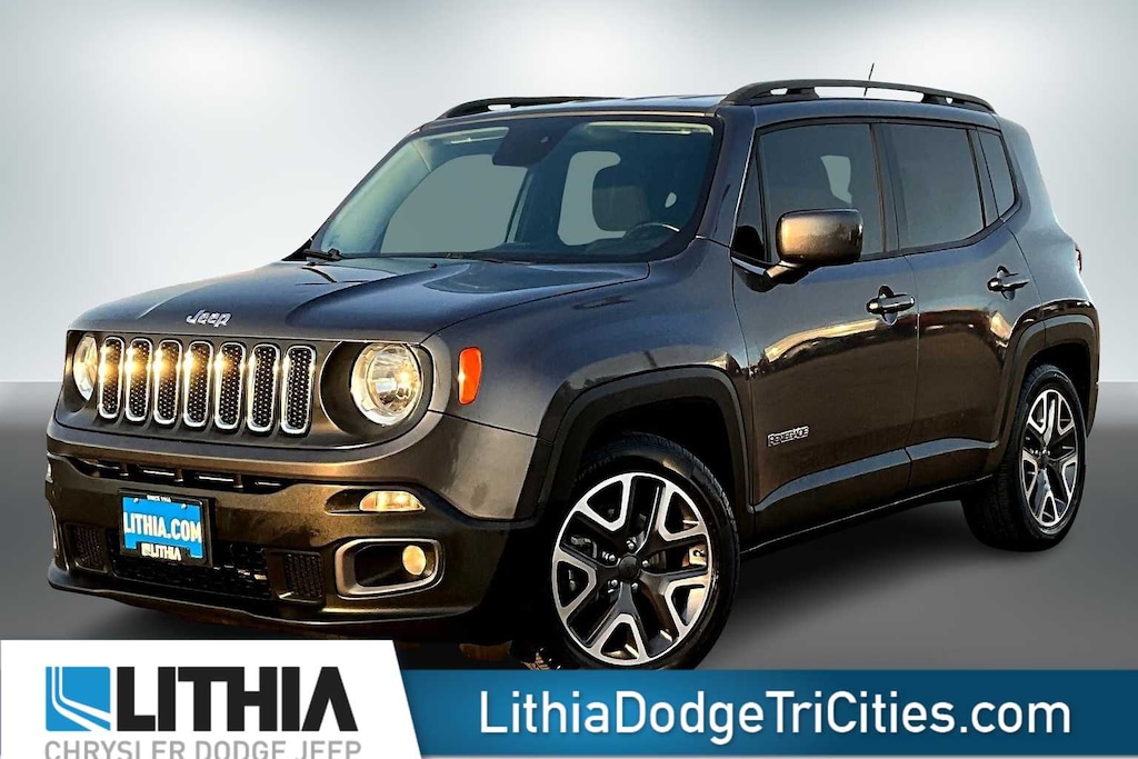 Lithia Chrysler Dodge Jeep Ram of Tri-Cities is pleased to offer this Granite Crystal Metallic Clearcoat 2017 Jeep Renegade Latitude for purchase, this vehicle is well equipped with many features including:6.5 Navigation Group w/Uconnect (1 Yr Trial (Registration Required), 5-Year SiriusXM Traffic Service, 5-Year SiriusXM Travel Link Service, 6.5 Touchscreen Display, Cluster 7 TFT Color Display, For Details Visit DriveUconnect.com, GPS Navigation, HD Radio, Radio: Uconnect 6.5 Nav, Remote USB Port, SiriusXM Traffic, SiriusXM Travel Link, and Uconnect Access), Quick Order Package 27J, 16 x 6.5 Aluminum Wheels, 18 x 7.0 Aluminum Wheels, 4-Wheel Disc Brakes, 6 Speakers, ABS brakes, Air Conditioning, Alloy wheels, AM/FM radio: SiriusXM, Anti-whiplash front head restraints, Brake assist, Cloth Low-Back Bucket Seats, Compass, Delay-off headlights, Driver door bin, Driver vanity mirror, Dual front impact airbags, Dual front side impact airbags, Electronic Stability Control, Four wheel independent suspension, Front anti-roll bar, Front Bucket Seats, Front Center Armrest, Front fog lights, Front reading lights, Fully automatic headlights, Heated door mirrors, Illuminated entry, Knee airbag, Leather steering wheel, Low tire pressure warning, Normal Duty Suspension, Occupant sensing airbag, Outside temperature display, Overhead airbag, Overhead console, Panic alarm, ParkView Rear Back-Up Camera, Passenger door bin, Passenger vanity mirror, Power door mirrors, Power steering, Power windows, Radio data system, Radio: Uconnect 3 w/5 Display, Rear anti-roll bar, Rear window defroster, Rear window wiper, Remote keyless entry, Roof rack: rails only, Speed control, Split folding rear seat, Spoiler, Steering wheel mounted audio controls, Tachometer, Telescoping steering wheel, Tilt steering wheel, Traction control, Trip computer, Variably intermittent wipers, and VoltmeteR. 2017 Jeep Renegade Latitude
