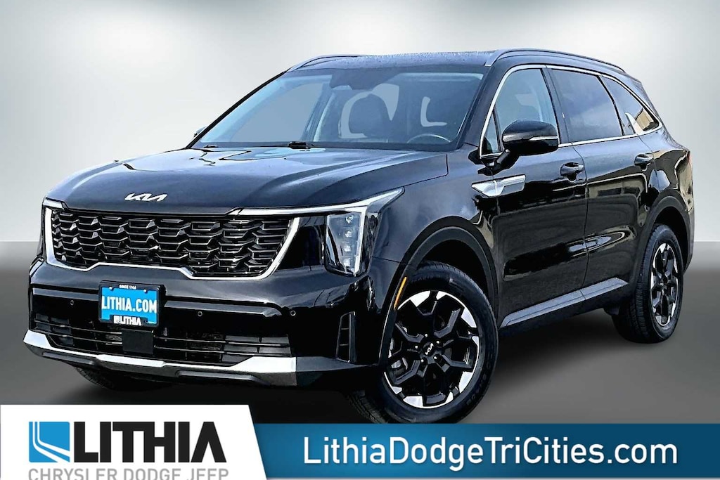Lithia Chrysler Dodge Jeep Ram of Tri-Cities is pleased to offer this Ebony Black 2024 Kia Sorento S for purchase, this vehicle is well equipped with many features including:AWD, 3rd row seats: split-bench, 4-Wheel Disc Brakes, 4.081 Axle Ratio, 6 Speakers, ABS brakes, Air Conditioning, Alloy wheels, AM/FM radio: SiriusXM, Apple CarPlay & Android Auto, Auto High-beam Headlights, Automatic temperature control, Brake assist, Bumpers: body-color, Carpeted Floor Mats, Delay-off headlights, Driver door bin, Driver vanity mirror, Dual front impact airbags, Dual front side impact airbags, Electronic Stability Control, Emergency communication system: 911 Connect, Exterior Parking Camera Rear, Four wheel independent suspension, Front anti-roll bar, Front Bucket Seats, Front Center Armrest, Front dual zone A/C, Front fog lights, Front reading lights, Fully automatic headlights, Heated door mirrors, Heated Front Bucket Seats, Heated front seats, Illuminated entry, Knee airbag, Leather Shift Knob, Leather steering wheel, Low tire pressure warning, Navigation System, Occupant sensing airbag, Outside temperature display, Overhead airbag, Overhead console, Panic alarm, Passenger door bin, Passenger vanity mirror, Power door mirrors, Power driver seat, Power steering, Power windows, Radio data system, Radio: AM/FM Audio System, Rear anti-roll bar, Rear reading lights, Rear seat center armrest, Rear side impact airbag, Rear window defroster, Rear window wiper, Remote keyless entry, Security system, Smart Key w/ Push Button and Remote Start, Speed control, Speed-sensing steering, Split folding rear seat, Spoiler, Steering wheel mounted audio controls, SynTex Artificial Leather Seat Trim, Tachometer, Telescoping steering wheel, Tilt steering wheel, Traction control, Trip computer, Turn signal indicator mirrors, Variably intermittent wipers, and Wheels: 7.5J x 18 Alloy w/Machine Finish. 2024 Kia Sorento S AWD.