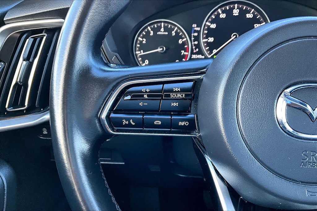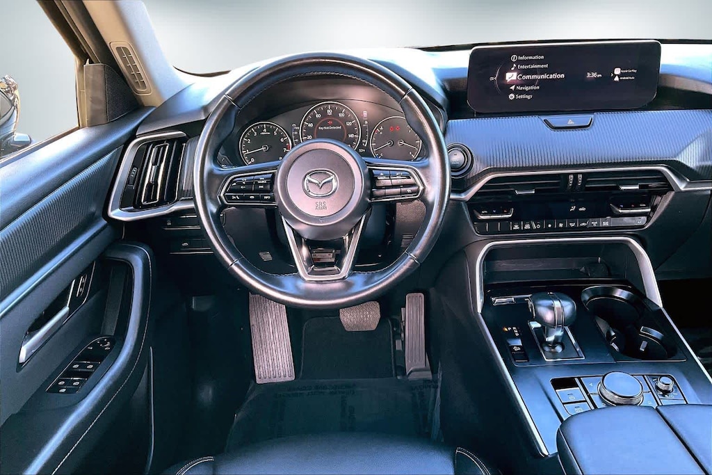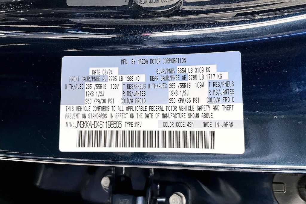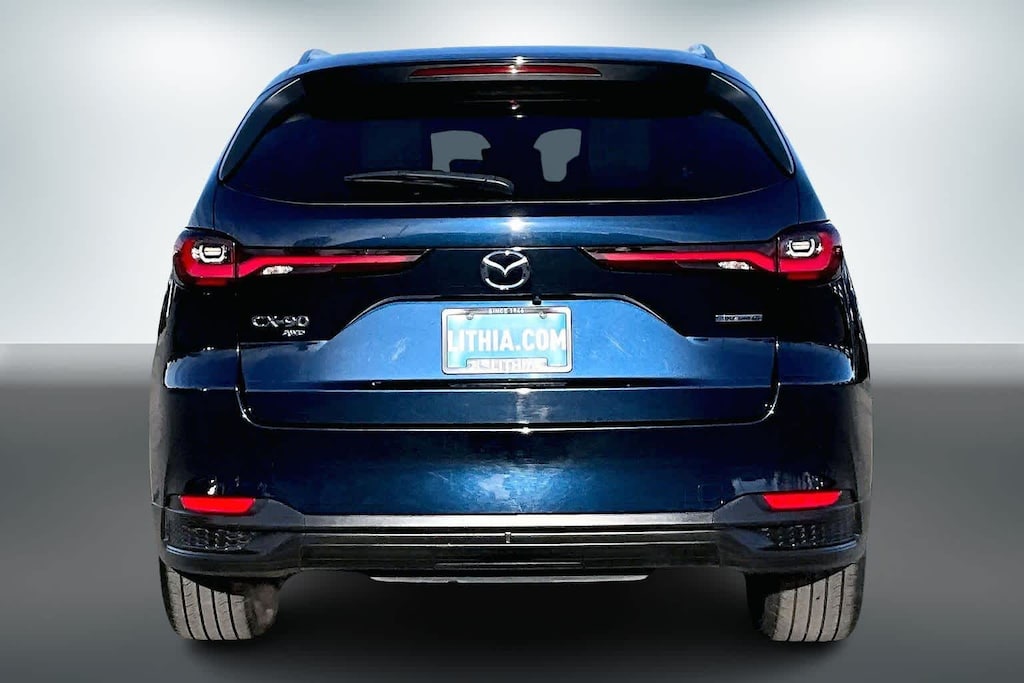 Lithia Chrysler Dodge Jeep Ram of Tri-Cities is pleased to offer this Deep Crystal Blue Mica 2025 Mazda CX-90 3.3 Turbo Select for purchase, this vehicle is well equipped with many features including:3rd row seats: bench, 4-Wheel Disc Brakes, 8 Speakers, ABS brakes, Air Conditioning, Alloy wheels, AM/FM radio, AppLink/Apple CarPlay and Android Auto, Auto High-beam Headlights, Automatic temperature control, Brake assist, Bumpers: body-color, Compass, Delay-off headlights, Driver door bin, Driver vanity mirror, Dual front impact airbags, Dual front side impact airbags, E911 Automatic Emergency Notification, Electronic Stability Control, Emergency communication system: MAZDA CONNECT, Exterior Parking Camera Rear, Four wheel independent suspension, Front anti-roll bar, Front Bucket Seats, Front Center Armrest w/Storage, Front dual zone A/C, Front reading lights, Fully automatic headlights, Heated door mirrors, Illuminated entry, Infotainment System Voice Command, Knee airbag, Leather Shift Knob, Leather steering wheel, Leatherette Seat Trim, Low tire pressure warning, Mazda Connected Services, Occupant sensing airbag, Outside temperature display, Overhead airbag, Overhead console, Pandora Internet Radio Integration, Panic alarm, Passenger door bin, Passenger vanity mirror, Power door mirrors, Power driver seat, Power Liftgate, Power steering, Power windows, Radio Broadcast Data System Program Information, Radio data system, Radio: AM/FM w/HD/8-Speaker Sound System, Rain sensing wipers, Rear air conditioning, Rear anti-roll bar, Rear reading lights, Rear seat center armrest, Rear window defroster, Rear window wiper, Remote keyless entry, SMS Text Msg Audio Delivery & Reply, Speed control, Speed-sensing steering, Split folding rear seat, Spoiler, Steering wheel mounted audio controls, Tachometer, Telescoping steering wheel, Tilt steering wheel, Traction control, Trip computer, Turn signal indicator mirrors, Variably intermittent wipers, and Wheels: 19 x 8.5J Aluminum Alloy. 2025 Mazda CX-90 3.3 Turbo Select