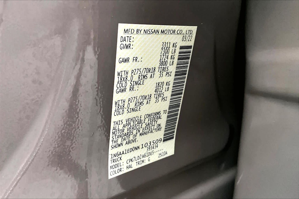 Lithia Chrysler Dodge Jeep Ram of Tri-Cities is pleased to offer this Baja Storm 2022 Nissan Titan PRO-4X for purchase, this vehicle is well equipped with many features including:4WD, 3.69 Axle Ratio, 4-Wheel Disc Brakes, 6 Speakers, ABS brakes, Air Conditioning, Alloy wheels, AM/FM radio: SiriusXM, Auto High-beam Headlights, Auto-dimming Rear-View mirror, Auto-leveling suspension, Automatic temperature control, Blind Spot Warning, Brake assist, Cloth Seat Trim w/Vinyl Bolsters, Compass, Delay-off headlights, Driver door bin, Driver vanity mirror, Dual front impact airbags, Dual front side impact airbags, Electronic Stability Control, Emergency communication system: NissanConnect Services, Front anti-roll bar, Front Bucket Seats, Front Captains Seats, Front Center Armrest, Front dual zone A/C, Front fog lights, Front reading lights, Front wheel independent suspension, Fully automatic headlights, Garage door transmitter: HomeLink, Heated door mirrors, Illuminated entry, Knee airbag, Leather steering wheel, Low tire pressure warning, Navigation system: NissanConnect Navigation, NissanConnect featuring Apple CarPlay and Android Auto, Occupant sensing airbag, Outside temperature display, Overhead airbag, Overhead console, Panic alarm, Passenger door bin, Passenger vanity mirror, Power door mirrors, Power driver seat, Power steering, Power windows, PRO-4X Badged Floor Mats, PRO-4X Illuminated Kick Plate, PRO-4X Mud Flaps, PRO-4X Rugged Step Boards, Radio data system, Radio: NissanConnect w/Navigation, Rain sensing wipers, Rear anti-roll bar, Rear Parking Sensors, Rear seat center armrest, Rear step bumper, Rear window defroster, Remote keyless entry, Security system, Speed control, Speed-sensing steering, Speed-Sensitive Wipers, Split folding rear seat, Steering wheel mounted audio controls, Tachometer, Telescoping steering wheel, Tilt steering wheel, Traction control, Trip computer, Variably intermittent wipers, Voltmeter, and Wheels: 18 x 8 Painted Dark Finish Alloy. 2022 Nissan Titan PRO-4X 4WD.