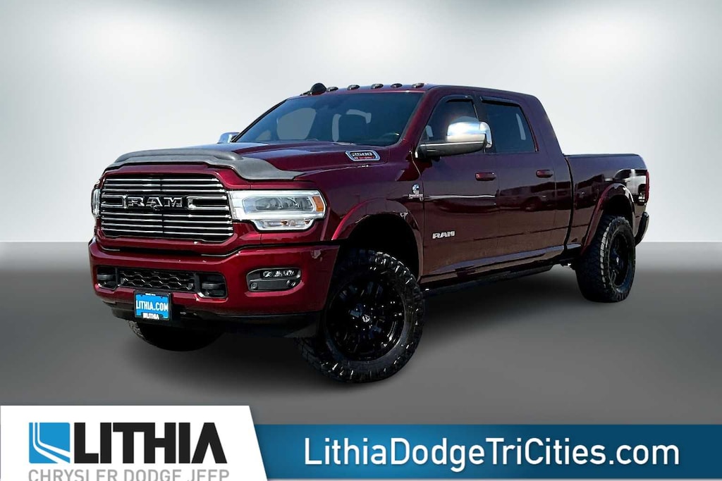 Lithia Chrysler Dodge Jeep Ram of Tri-Cities is pleased to offer this Delmonico Red Pearlcoat 2020 Ram 2500 Laramie for purchase, this vehicle is well equipped with many features including:Bed Utility Group (Deployable Bed Step, LED Bed Lighting, and Spray In Bedliner), Laramie Level 2 Equipment Group (1-Year SiriusXM Guardian Trial, 17 Speaker harman kardon Premium Sound, 5-Year SiriusXM Traffic Service, 5-Year SiriusXM Travel Link Service, 8.4 Touchscreen Display, Apple CarPlay, Auto High Beam Headlamp Control, Blind Spot & Cross Path Detection, Disassociated Touchscreen Display, Exterior Mirrors w/Memory, Foam Bottle Insert (Door Trim Panel), For Details Visit DriveUconnect.com, Google Android Auto, GPS Antenna Input, GPS Navigation, HD Radio, Heated Second Row Seats, Integrated Center Stack Radio, Integrated Voice Command w/Bluetooth, Media Hub w/2 Charge Only USBs, Mirror-Mounted Aux Reverse Lamps, Power Adjustable Convex Aux Mirrors, Power Adjustable Pedals w/Memory, Pwr Convenience Chrome Tow Mirrors w/Spotter & Memory, Radio: Uconnect 4C Nav w/8.4 Display, Radio/Driver Seat/Mirrors/Pedals Memory, Rain Sensitive Windshield Wipers, Remote Tailgate Release, SiriusXM Satellite Radio, SiriusXM Traffic Plus, SiriusXM Travel Link, USB Host Flip, and Ventilated Front Seats), Quick Order Package 2HH Laramie, Safety Group (Adaptive Cruise Control w/Stop, Adaptive Steering System, Full Speed Forward Collision Warning Plus, and Lane Keep Assist), Sport Appearance Package (Black Interior Accents, Body Color Door Handles, Body Color Grille Surround, Painted Front Bumper, Painted Rear Bumper, and Sport Decal), Towing Technology Group (Center Stop Lamp w/Cargo View Camera, Surround View Camera System, and Trailer Reverse Guidance), #1 Seat Foam Cushion, 10 Speakers, 115V Auxiliary Rear Power Outlet, 12 Touchscreen Display, 2 Way Rear Headrest Seat, 220 Amp Alternator, 3.73 Axle Ratio, 4 Way Front Headrests, 4-Wheel Disc Brakes, 400W Inverter, ABS brakes, Active Noise Control System, Adjustable pedals, Air Conditioning, Air Suspension Decal, Alloy wheels, AM/FM radio: SiriusXM, Anti-Spin Differential Rear Axle, Apple CarPlay/Android Auto, Auto Level Rear Air Suspension, Auto-dimming Rear-View mirror, Automatic temperature control, Brake assist, Bumpers: chrome, Center Hub, Clearance Lamps, Compass, Delay-off headlights, Driver door bin, Driver vanity mirror, Dual front impact airbags, Dual front side impact airbags, Electronic Stability Control, Electronically Controlled Throttle, Front & Rear Rubber Floor Mats, Front anti-roll bar, Front Center Armrest w/Storage, Front dual zone A/C, Front fog lights, Front reading lights, Front Seat Back Map Pockets, Fully automatic headlights, Garage door transmitter, Heated door mirrors, Heated Front Seats, Heated front seats, Heated Steering Wheel, Heated steering wheel, High Back Seats, I/P Mounted Auxiliary Switches, Illuminated entry, Leather steering wheel, Leather Trim 40/20/40 Bench Seat, Low tire pressure warning, Manufacturers Statement of Origin, Occupant sensing airbag, Outside temperature display, Overhead airbag, Overhead console, Panic alarm, ParkView Rear Back-Up Camera, Passenger door bin, Passenger vanity mirror, Power 2-Way Driver Lumbar Adjust, Power 2-Way Passenger Lumbar Adjust, Power Adjust 8-Way Driver Seat, Power Adjust 8-Way Front Passenger Seat, Power Deployable Running Boards, Power door mirrors, Power driver seat, Power passenger seat, Power steering, Power Sunroof, Power windows, Radio data system, Radio: Uconnect 12 w/Navigation, Radio: Uconnect 4 w/8.4 Display, Rear 60/40 Folding Seat, Rear anti-roll bar, Rear reading lights, Rear seat center armrest, Rear step bumper, Rear window defroster, Remote keyless entry, Security system, SiriusXM w/360L, Speed control, Split folding rear seat, Steering wheel mounted audio controls, Tachometer, Tilt steering wheel, Tip Start, Traction control, Trailer Camera Wiring w/No Camera, Trip computer, Turn signal indicator mirrors