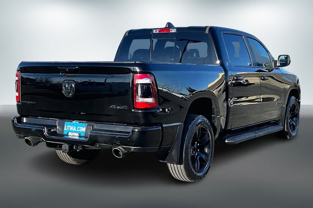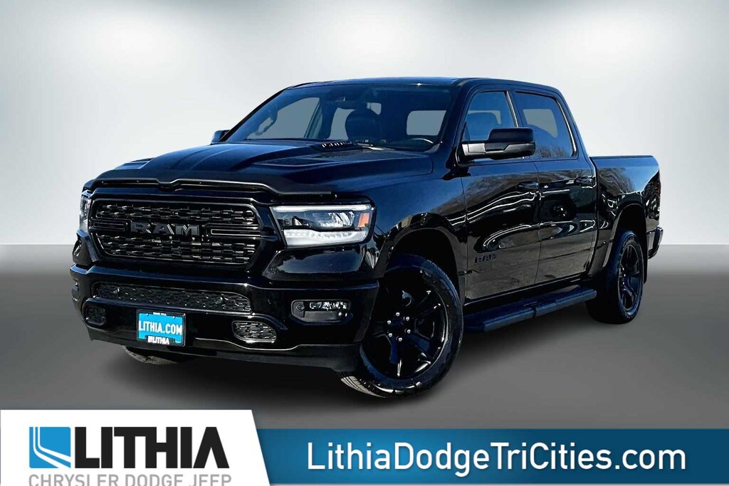 Lithia Chrysler Dodge Jeep Ram of Tri-Cities is pleased to offer this Diamond Black Crystal Pearlcoat 2022 Ram 1500 Sport for purchase, this vehicle is well equipped with many features including:ABS brakes, Alloy wheels, Compass, Electronic Stability Control, Front Heated Seats, Heated door mirrors, Heated Exterior Mirrors, Heated front seats, Illuminated entry, Low tire pressure warning, ParkView Rear Back-Up Camera, Remote keyless entry, Traction control, 1-Year SiriusXM Subscription, 20 x 9 Aluminum Wheels, 2nd Row In-Floor Storage Bins, 3 Rear Seat Head Restraints, 3.21 Rear Axle Ratio, 4-Way Front Headrests, 4-Wheel Disc Brakes, 4G LTE Wi-Fi Hot Spot, 6 Speakers, Adjustable pedals, Air Conditioning, AM/FM radio: SiriusXM, Apple CarPlay Capable, Apple CarPlay/Android Auto, Auto High-beam Headlights, Auto-dimming door mirrors, Auto-dimming Rear-View mirror, Black Dual Exhaust Tips, Block heater, Brake assist, Bucket Seats, Bumpers: body-colour, Cloth Low-Back Bucket Seats, Connectivity - US/Canada, Delay-off headlights, Driver door bin, Driver vanity mirror, Dual front impact airbags, Dual front side impact airbags, Exterior Mirrors w/Courtesy Lamps, Exterior Mirrors w/Turn Signals, For Details Visit DriveUconnect.ca, Front anti-roll bar, Front Bucket Seats, Front fog lights, Front reading lights, Front Seatback Map Pockets, Front wheel independent suspension, Fully automatic headlights, Garage door transmitter, Google Android Auto, GPS Antenna Input, Heated Steering Wheel, Heated steering wheel, Integrated Centre Stack Radio, Leather steering wheel, Occupant sensing airbag, Outside temperature display, Overhead airbag, Overhead console, Panic alarm, Passenger door bin, Passenger vanity mirror, Power 2-Way Driver Lumbar Adjust, Power door mirrors, Power driver seat, Power steering, Power windows, Radio data system, Radio: Uconnect 5 w/8.4 Display, Rear 60/40 Folding Seat, Rear anti-roll bar, Rear step bumper, Rear window defroster, Speed control, Split folding rear seat, Steering wheel mounted audio controls, Tachometer, Telescoping steering wheel, Tilt steering wheel, Trip computer, Turn signal indicator mirrors, USB Mobile Projection, Variably intermittent wipers, and VoltmeteR. 2022 Ram 1500 Sport ABS brakes, Alloy wheels, Compass, Electronic Stability Control, Front Heated Seats, Heated door mirrors, Heated Exterior Mirrors, Heated front seats, Illuminated entry, Low tire pressure warning, ParkView Rear Back-Up Camera, Remote keyless entry, Traction control.