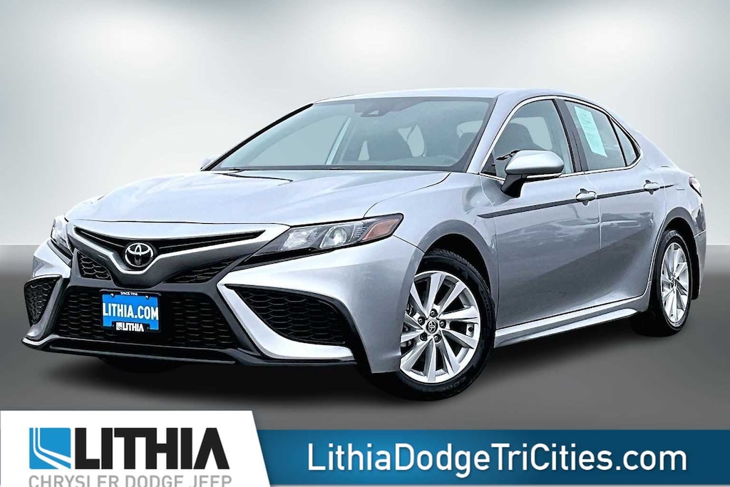 Lithia Chrysler Dodge Jeep Ram of Tri-Cities is pleased to offer this Silver 2023 Toyota Camry SE for purchase, this vehicle is well equipped with many features including:Blk/Black Artificial Leather, ABS brakes, Active Cruise Control, Alloy wheels, Electronic Stability Control, Front dual zone A/C, Heated door mirrors, Illuminated entry, Low tire pressure warning, Remote keyless entry, Traction control, 4-Wheel Disc Brakes, 6 Speakers, 8.0J x 18 Alloy Wheels, Air Conditioning, AM/FM radio: SiriusXM, Apple CarPlay/Android Auto, Auto High-beam Headlights, Automatic temperature control, Brake assist, Bumpers: body-color, Delay-off headlights, Driver door bin, Driver vanity mirror, Dual front impact airbags, Dual front side impact airbags, Emergency communication system: Safety Connect (1-year trial), Exterior Parking Camera Rear, Four wheel independent suspension, Front anti-roll bar, Front Bucket Seats, Front Center Armrest, Front reading lights, Fully automatic headlights, Knee airbag, Leather steering wheel, Occupant sensing airbag, Outside temperature display, Overhead airbag, Overhead console, Panic alarm, Passenger door bin, Passenger vanity mirror, Power door mirrors, Power driver seat, Power steering, Power windows, Radio data system, Radio: Audio, Rear anti-roll bar, Rear seat center armrest, Rear side impact airbag, Rear window defroster, Security system, Speed control, Speed-sensing steering, Split folding rear seat, Spoiler, Sport SofTex Seat Trim w/Fabric Inserts, Steering wheel mounted audio controls, Tachometer, Telescoping steering wheel, Tilt steering wheel, Trip computer, Turn signal indicator mirrors, and Variably intermittent wipers. 2023 Toyota Camry SE Blk/Black Artificial Leather, ABS brakes, Active Cruise Control, Alloy wheels, Electronic Stability Control, Front dual zone A/C, Heated door mirrors, Illuminated entry, Low tire pressure warning, Remote keyless entry, Traction control.