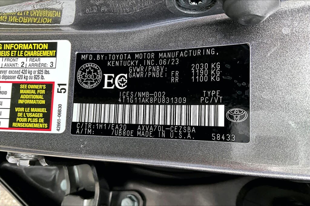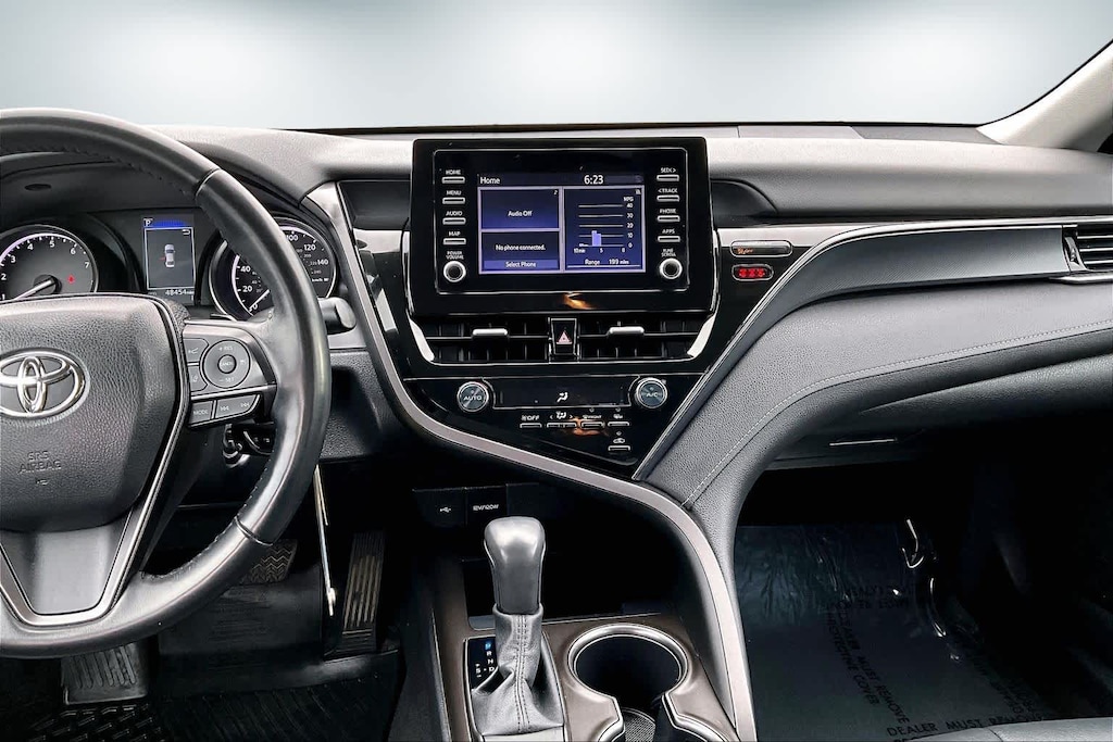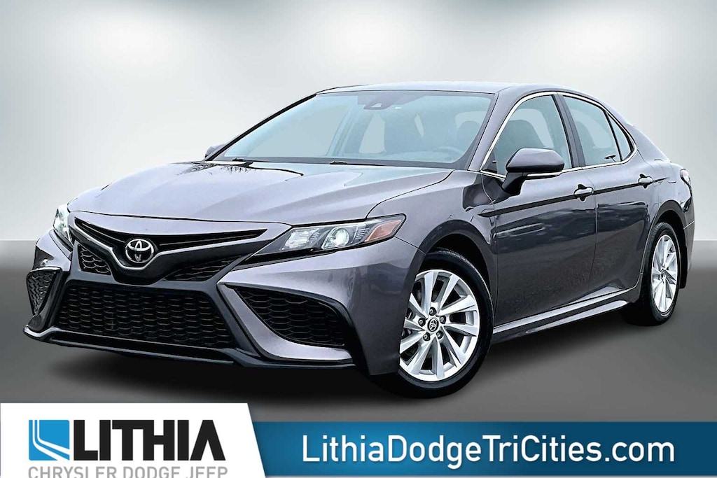 Lithia Chrysler Dodge Jeep Ram of Tri-Cities is pleased to offer this Gray 2023 Toyota Camry SE for purchase, this vehicle is well equipped with many features including:Blk/Black Artificial Leather, ABS brakes, Active Cruise Control, Alloy wheels, Electronic Stability Control, Front dual zone A/C, Heated door mirrors, Illuminated entry, Low tire pressure warning, Remote keyless entry, Traction control, 4-Wheel Disc Brakes, 6 Speakers, 8.0J x 18 Alloy Wheels, Air Conditioning, AM/FM radio: SiriusXM, Apple CarPlay/Android Auto, Auto High-beam Headlights, Automatic temperature control, Brake assist, Bumpers: body-color, Delay-off headlights, Driver door bin, Driver vanity mirror, Dual front impact airbags, Dual front side impact airbags, Emergency communication system: Safety Connect (1-year trial), Exterior Parking Camera Rear, Four wheel independent suspension, Front anti-roll bar, Front Bucket Seats, Front Center Armrest, Front reading lights, Fully automatic headlights, Knee airbag, Leather steering wheel, Occupant sensing airbag, Outside temperature display, Overhead airbag, Overhead console, Panic alarm, Passenger door bin, Passenger vanity mirror, Power door mirrors, Power driver seat, Power steering, Power windows, Radio data system, Radio: Audio, Rear anti-roll bar, Rear seat center armrest, Rear side impact airbag, Rear window defroster, Security system, Speed control, Speed-sensing steering, Split folding rear seat, Spoiler, Sport SofTex Seat Trim w/Fabric Inserts, Steering wheel mounted audio controls, Tachometer, Telescoping steering wheel, Tilt steering wheel, Trip computer, Turn signal indicator mirrors, and Variably intermittent wipers. 2023 Toyota Camry SE Blk/Black Artificial Leather, ABS brakes, Active Cruise Control, Alloy wheels, Electronic Stability Control, Front dual zone A/C, Heated door mirrors, Illuminated entry, Low tire pressure warning, Remote keyless entry, Traction control.