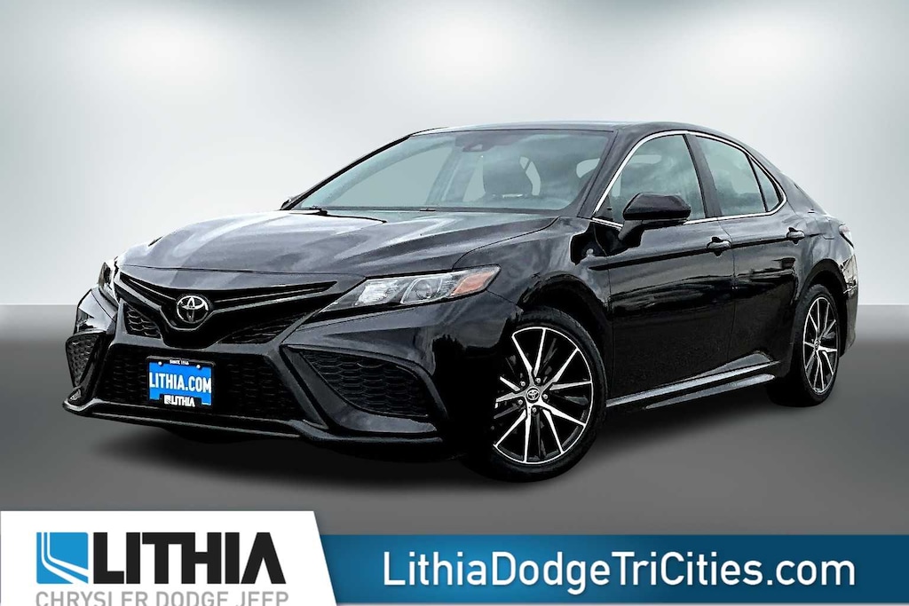 Lithia Chrysler Dodge Jeep Ram of Tri-Cities is pleased to offer this Black 2024 Toyota Camry SE for purchase, this vehicle is well equipped with many features including:Blk/Black Artificial Leather, ABS brakes, Active Cruise Control, Alloy wheels, Electronic Stability Control, Front dual zone A/C, Heated door mirrors, Illuminated entry, Low tire pressure warning, Remote keyless entry, Traction control, 18 x 8J Alloy Wheels, 4-Wheel Disc Brakes, 6 Speakers, Air Conditioning, AM/FM radio: SiriusXM, Apple CarPlay/Android Auto, Auto High-beam Headlights, Automatic temperature control, Brake assist, Bumpers: body-color, Delay-off headlights, Driver door bin, Driver vanity mirror, Dual front impact airbags, Dual front side impact airbags, Emergency communication system: Safety Connect (1-year trial), Exterior Parking Camera Rear, Four wheel independent suspension, Front anti-roll bar, Front Bucket Seats, Front Center Armrest, Front reading lights, Fully automatic headlights, Knee airbag, Leather steering wheel, Occupant sensing airbag, Outside temperature display, Overhead airbag, Overhead console, Panic alarm, Passenger door bin, Passenger vanity mirror, Power door mirrors, Power driver seat, Power steering, Power windows, Radio data system, Radio: Audio, Rear anti-roll bar, Rear seat center armrest, Rear side impact airbag, Rear window defroster, Security system, Speed control, Speed-sensing steering, Split folding rear seat, Spoiler, Sport SofTex Seat Trim w/Fabric Inserts, Steering wheel mounted audio controls, Tachometer, Telescoping steering wheel, Tilt steering wheel, Trip computer, Turn signal indicator mirrors, and Variably intermittent wipers. 2024 Toyota Camry SE Blk/Black Artificial Leather, ABS brakes, Active Cruise Control, Alloy wheels, Electronic Stability Control, Front dual zone A/C, Heated door mirrors, Illuminated entry, Low tire pressure warning, Remote keyless entry, Traction control.