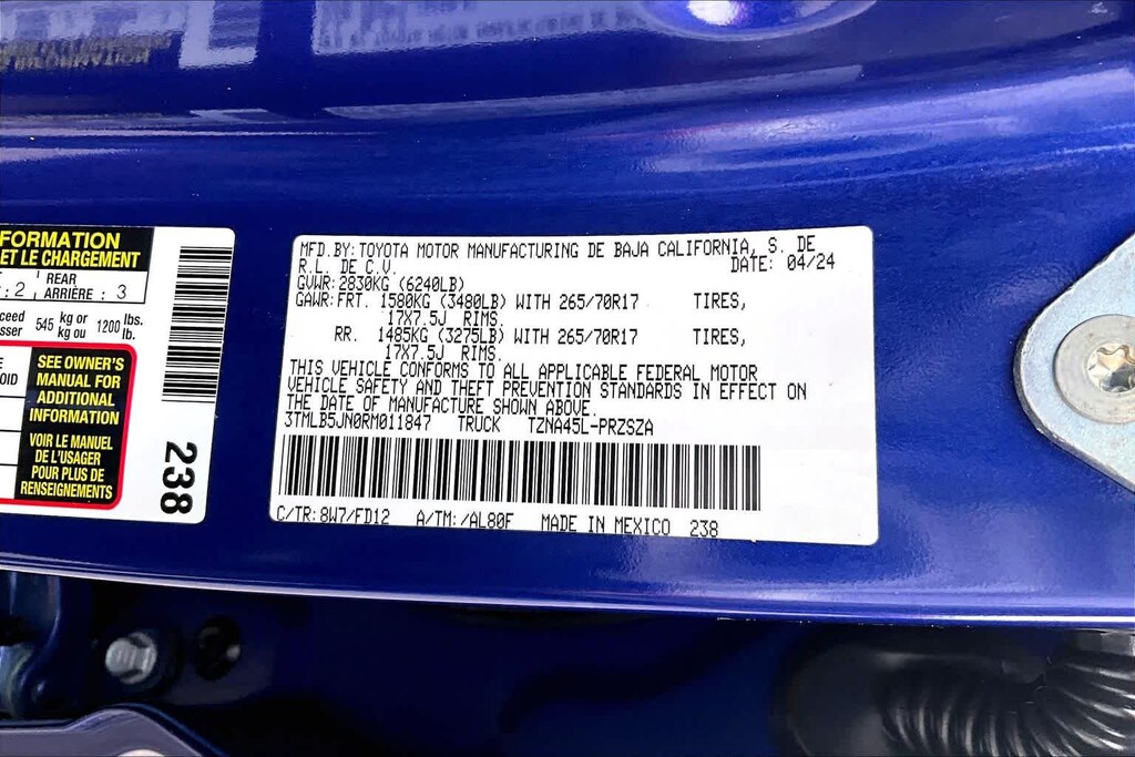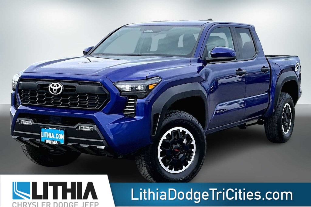 Lithia Chrysler Dodge Jeep Ram of Tri-Cities is pleased to offer this Blue 2024 Toyota Tacoma TRD Sport for purchase, this vehicle is well equipped with many features including:4WD, ABS brakes, Alloy wheels, Electronic Stability Control, Heated door mirrors, Illuminated entry, Low tire pressure warning, Remote keyless entry, Traction control, 3.583 Axle Ratio, 4-Wheel Disc Brakes, 6 Speakers, Air Conditioning, AM/FM radio: SiriusXM, Anti-whiplash front head restraints, Apple CarPlay/Android Auto, Auto High-beam Headlights, Auto-dimming Rear-View mirror, Automatic temperature control, Brake assist, Bumpers: body-color, Driver door bin, Driver vanity mirror, Dual front impact airbags, Dual front side impact airbags, Emergency communication system: Safety Connect (1-year trial), Exterior Parking Camera Rear, Fabric Seat Trim (FE), Four wheel independent suspension, Front anti-roll bar, Front Bucket Seats, Front Center Armrest, Front fog lights, Front reading lights, Fully automatic headlights, Knee airbag, Leather Shift Knob, Leather steering wheel, Occupant sensing airbag, Outside temperature display, Overhead airbag, Overhead console, Panic alarm, Passenger door bin, Passenger vanity mirror, Power door mirrors, Power steering, Power windows, Radio: 8 Toyota Audio Multimedia, Rear step bumper, Rear window defroster, Security system, Speed control, Speed-sensing steering, Split folding rear seat, Steering wheel mounted audio controls, Tachometer, Telescoping steering wheel, Tilt steering wheel, Trip computer, Turn signal indicator mirrors, Variably intermittent wipers, and Wheels: 18 TRD Sport Alloy. 2024 Toyota Tacoma TRD Sport 4WD, ABS brakes, Alloy wheels, Electronic Stability Control, Heated door mirrors, Illuminated entry, Low tire pressure warning, Remote keyless entry, Traction control.