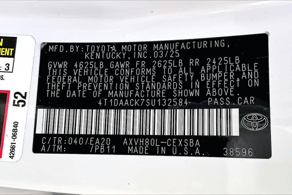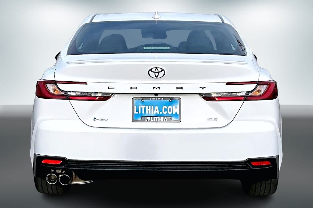 Lithia Chrysler Dodge Jeep Ram of Tri-Cities is pleased to offer this White 2025 Toyota Camry SE for purchase, this vehicle is well equipped with many features including:2.5L 4-Cylinder 16V DOHC, Blk/Black Leather, ABS brakes, Active Cruise Control, Alloy wheels, Electronic Stability Control, Front dual zone A/C, Heated door mirrors, Illuminated entry, Low tire pressure warning, Remote keyless entry, Traction control, 4-Wheel Disc Brakes, 6 Speakers, Air Conditioning, AM/FM radio: SiriusXM, Apple CarPlay/Android Auto, Auto High-beam Headlights, Automatic temperature control, Brake assist, Bumpers: body-color, Delay-off headlights, Driver door bin, Driver vanity mirror, Dual front impact airbags, Dual front side impact airbags, Emergency communication system: Safety Connect (up to 10-year trial subscription), Exterior Parking Camera Rear, Four wheel independent suspension, Front anti-roll bar, Front Bucket Seats, Front Center Armrest, Front reading lights, Fully automatic headlights, Knee airbag, Leather Shift Knob, Leather steering wheel, Occupant sensing airbag, Outside temperature display, Overhead airbag, Overhead console, Panic alarm, Passenger door bin, Passenger vanity mirror, Power door mirrors, Power driver seat, Power steering, Power windows, Radio data system, Radio: Toyota Audio Multimedia w/8 Touchscreen, Rear anti-roll bar, Rear reading lights, Rear seat center armrest, Rear side impact airbag, Rear window defroster, Security system, SofTex & Fabric Seat Trim, Speed control, Speed-sensing steering, Split folding rear seat, Spoiler, Steering wheel mounted audio controls, Telescoping steering wheel, Tilt steering wheel, Trip computer, Turn signal indicator mirrors, Variably intermittent wipers, and Wheels: 18 Black-Finished Alloy. 2025 Toyota Camry SE 2.5L 4-Cylinder 16V DOHC, Blk/Black Leather, ABS brakes, Active Cruise Control, Alloy wheels, Electronic Stability Control, Front dual zone A/C, Heated door mirrors, Illuminated entry, Low tire pressure warning, Remote keyless entry, Traction control.