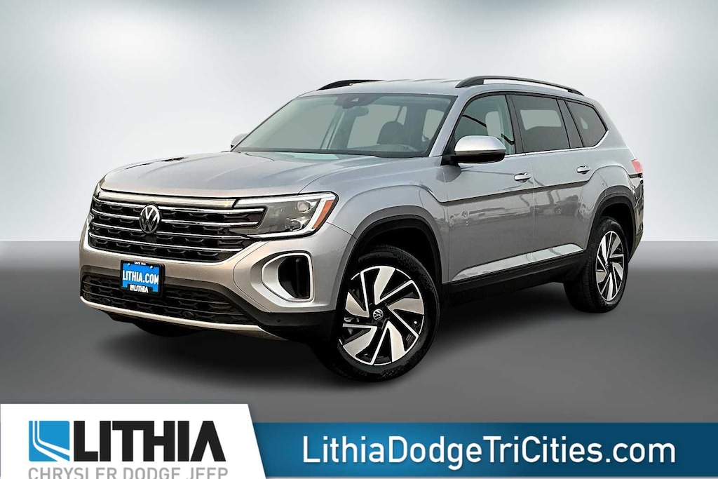 Lithia Chrysler Dodge Jeep Ram of Tri-Cities is pleased to offer this Gray 2024 Volkswagen Atlas 2.0T SE w/Technology for purchase, this vehicle is well equipped with many features including:3.60 Axle Ratio, 3rd row seats: split-bench, 4-Wheel Disc Brakes, 6 Speakers, ABS brakes, Air Conditioning, Alloy wheels, AM/FM radio: SiriusXM with 360L, Auto-dimming Rear-View mirror, Automatic temperature control, Brake assist, Bumpers: body-color, Compass, Delay-off headlights, Driver door bin, Driver vanity mirror, Dual front impact airbags, Dual front side impact airbags, Electronic Stability Control, Emergency communication system: VW Car-Net Safe & Secure 5-year, Exterior Parking Camera Rear, Four wheel independent suspension, Front anti-roll bar, Front Bucket Seats, Front Center Armrest, Front dual zone A/C, Front fog lights, Front reading lights, Fully automatic headlights, Heated door mirrors, Heated front seats, Heated steering wheel, Heated/Actively Ventilated Front Bucket Seats, Illuminated entry, Low tire pressure warning, Occupant sensing airbag, Outside temperature display, Overhead airbag, Overhead console, Panic alarm, Passenger door bin, Passenger vanity mirror, Perforated V-Tex Leatherette Seating Surfaces, Power door mirrors, Power driver seat, Power Liftgate, Power steering, Power windows, Radio data system, Radio: MIB3 Composition Media, Rain sensing wipers, Rear air conditioning, Rear anti-roll bar, Rear reading lights, Rear seat center armrest, Rear window defroster, Rear window wiper, Remote keyless entry, Security system, Speed control, Speed-sensing steering, Split folding rear seat, Spoiler, Standard Suspension, Steering wheel mounted audio controls, Tachometer, Telescoping steering wheel, Tilt steering wheel, Traction control, Trip computer, Turn signal indicator mirrors, Variably intermittent wipers, Ventilated front seats, and Wheels: 20 2-Tone Machined Alloy. 2024 Volkswagen Atlas 2.0T SE w/Technology